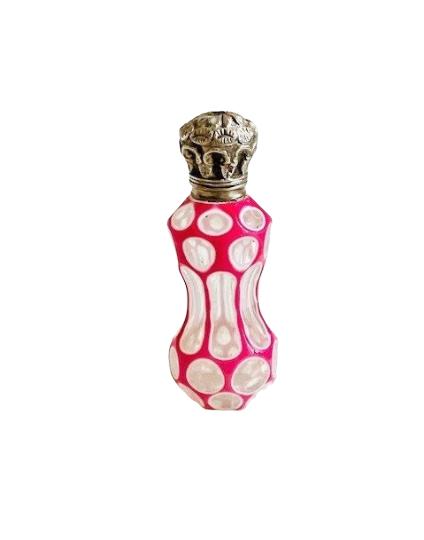Antique Double Overlay Pink Over White Over Clear Waisted Perfume Scent Bottle Circa 1880