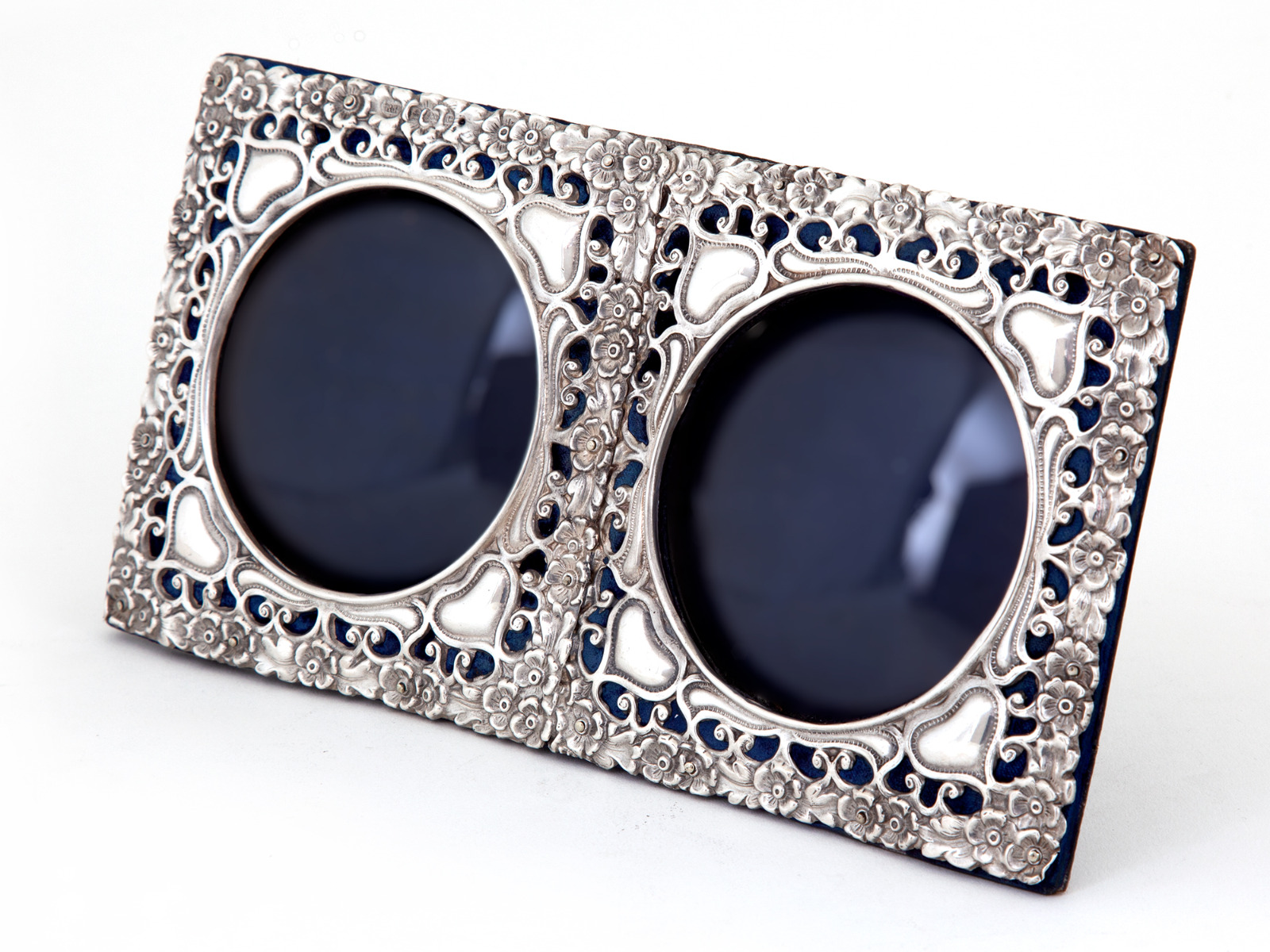 Antique Double Window Silver Photo Frame with a Floral Border & Hearts (1 of 4)