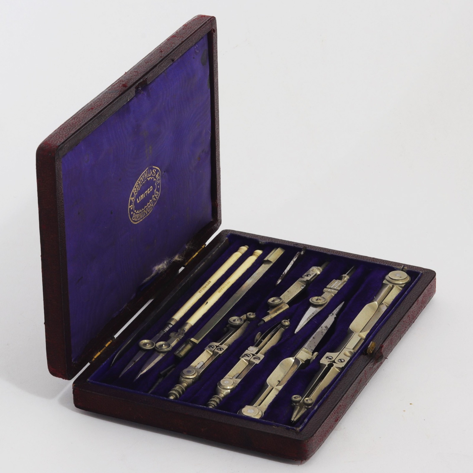 Antique Drawing Instrument Set by J.A. Reynolds & Co Birmingham C.1910