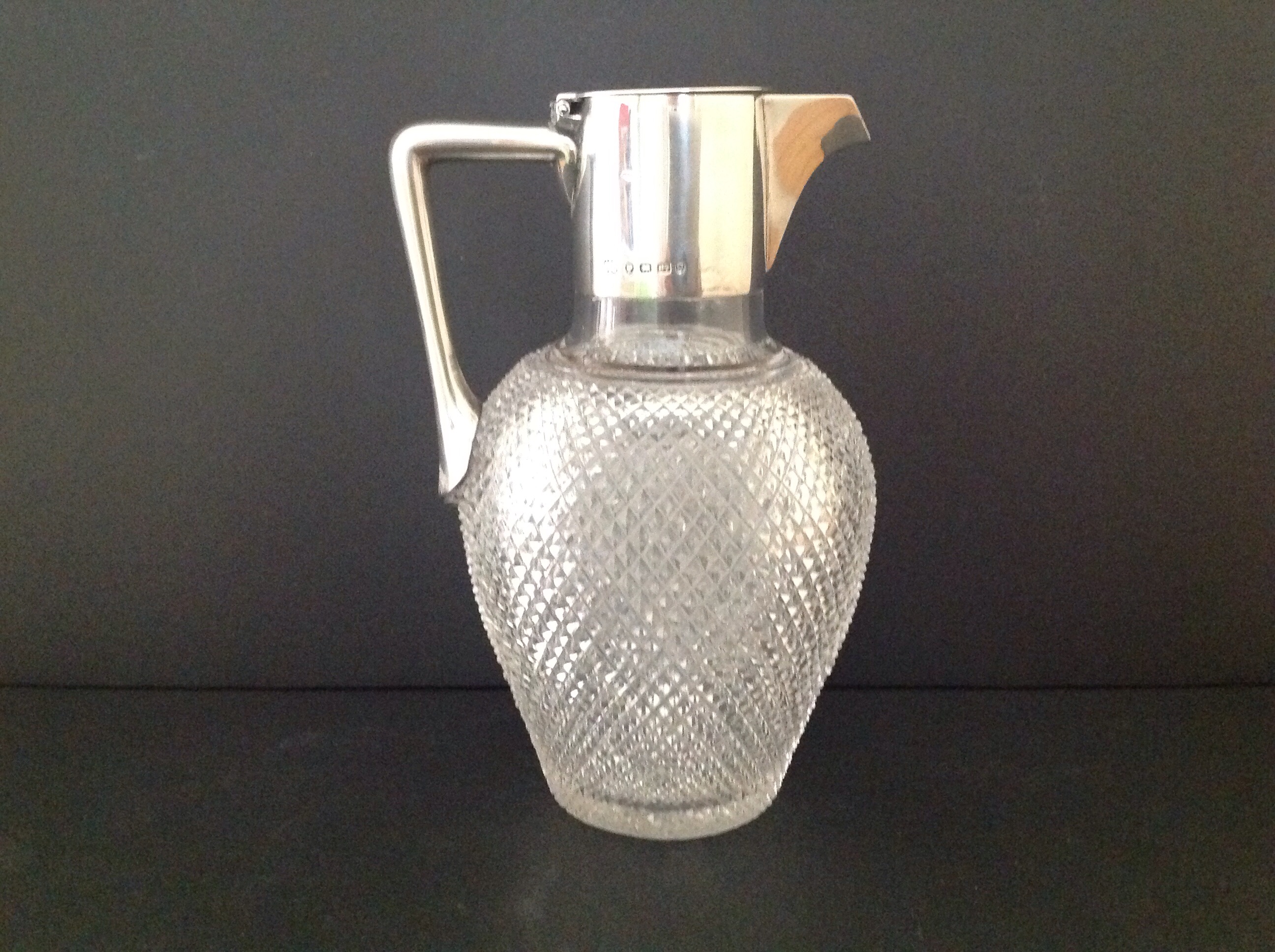 ANTIQUE DRESSER STYLE SILVER CLARET JUG - 1888