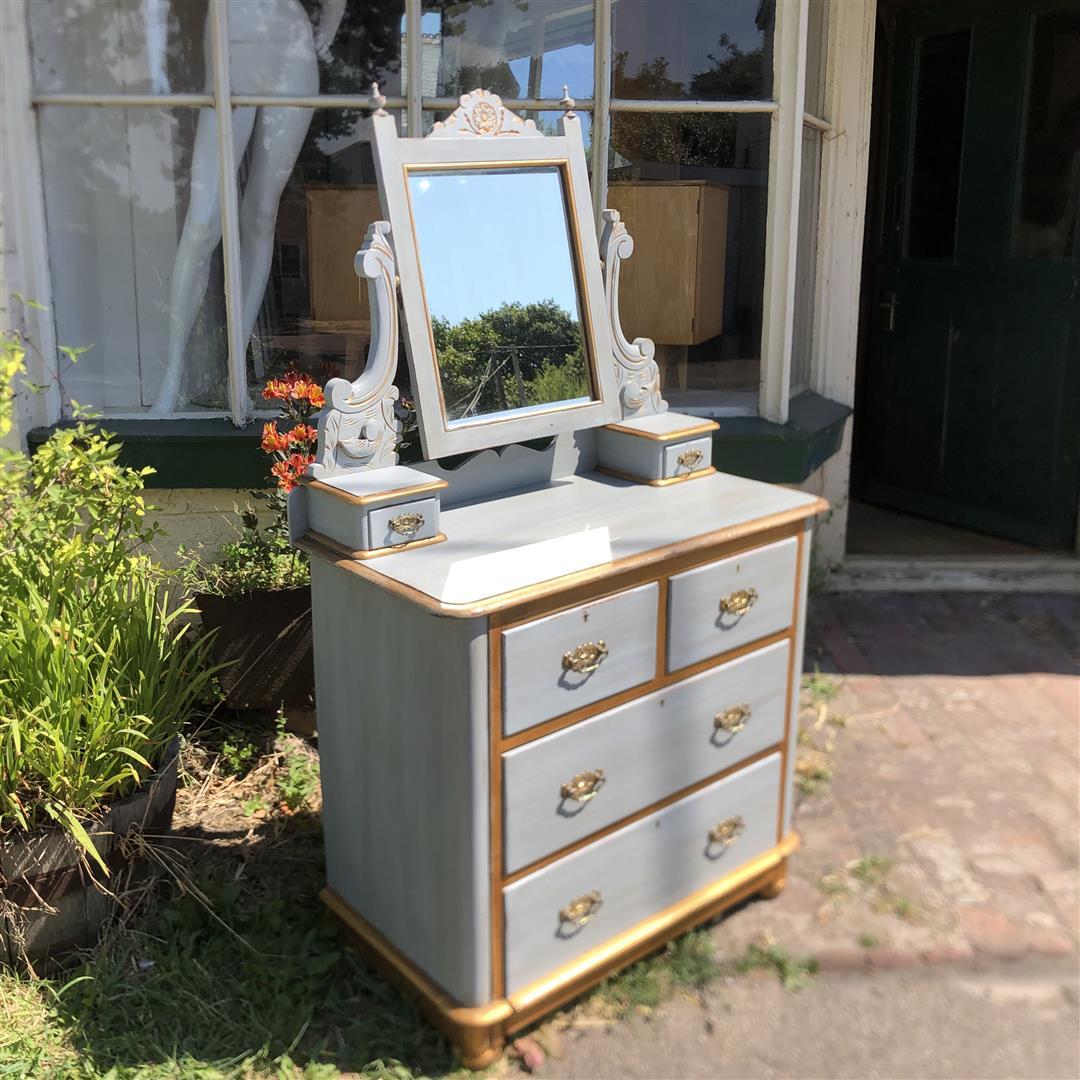Antique Dressing Chest of Drawers Painted Blue & Gold