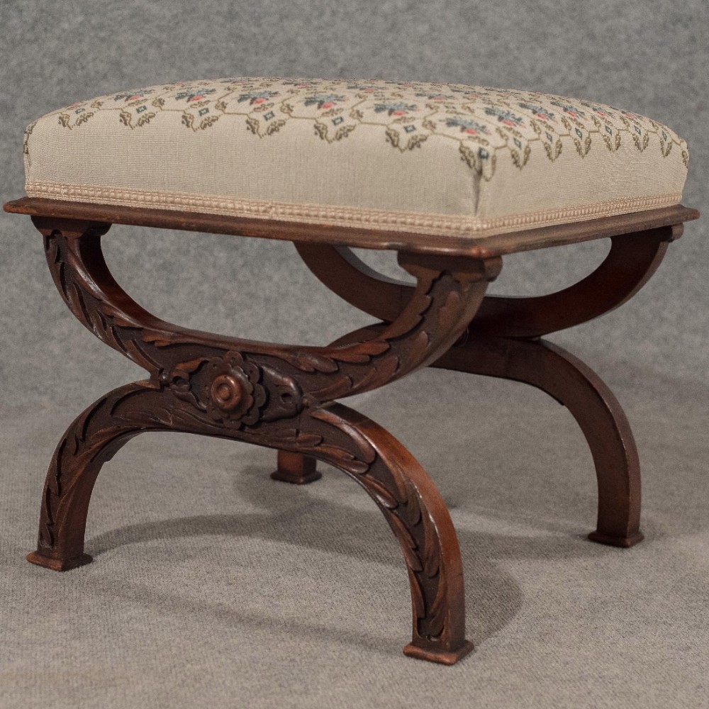 Antique Dressing Music Stool Footstool Needlepoint Tapestry Victorian c.1870