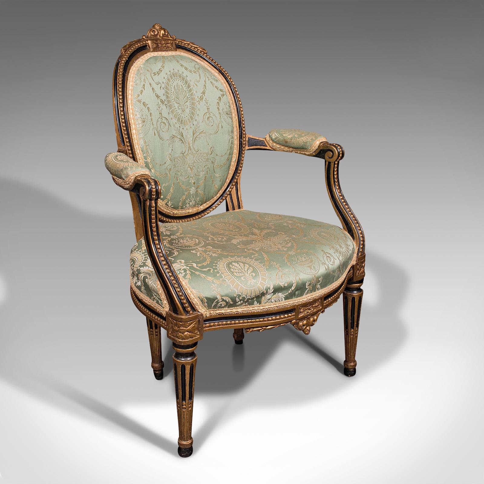 Antique Dressing Room Armchair, English, Elbow Chair, Silk Cotton, Regency c.1820 (1 of 12)