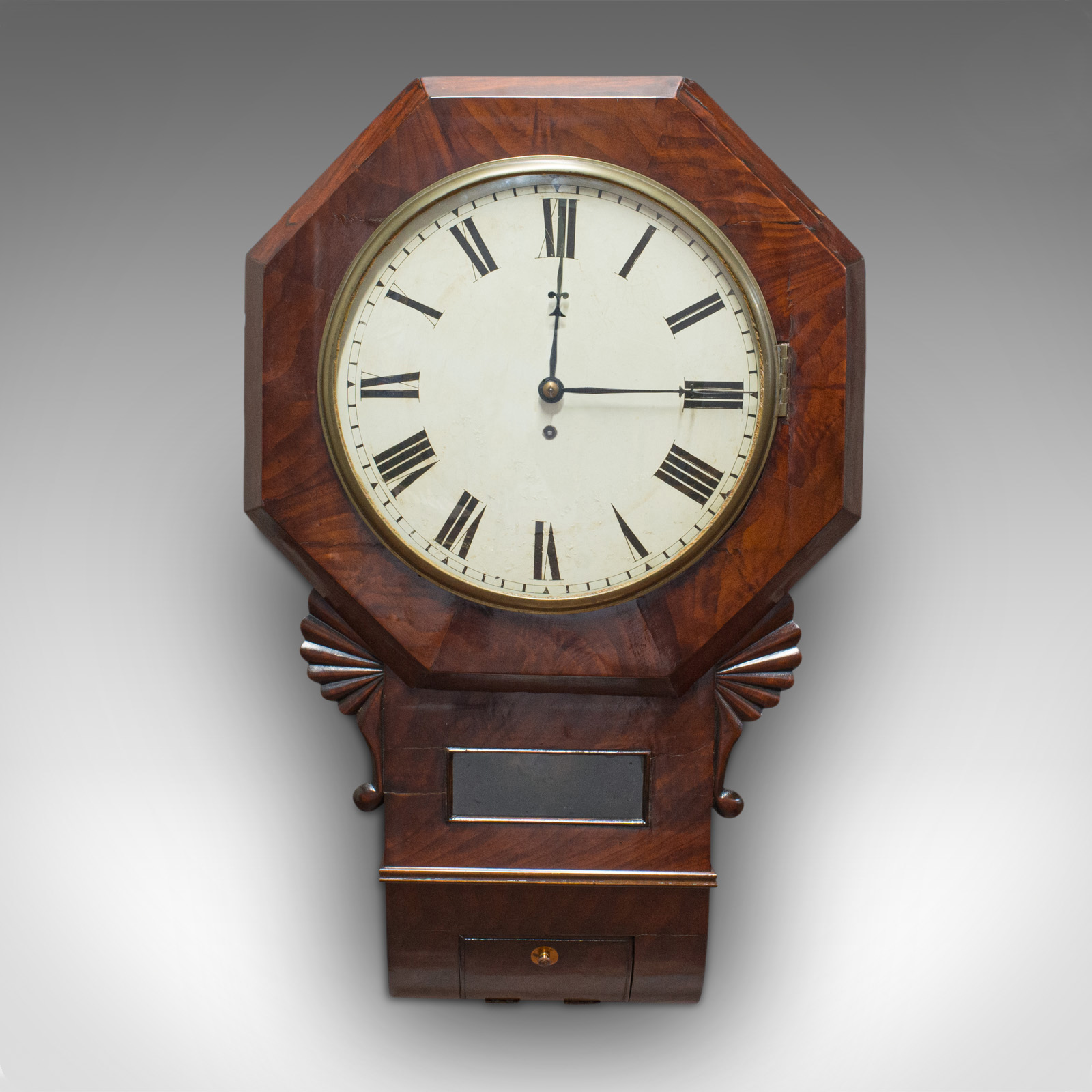 Antique Drop Dial Wall Clock, English, Timepiece, Fusee, Victorian C.1870 (1 of 12)