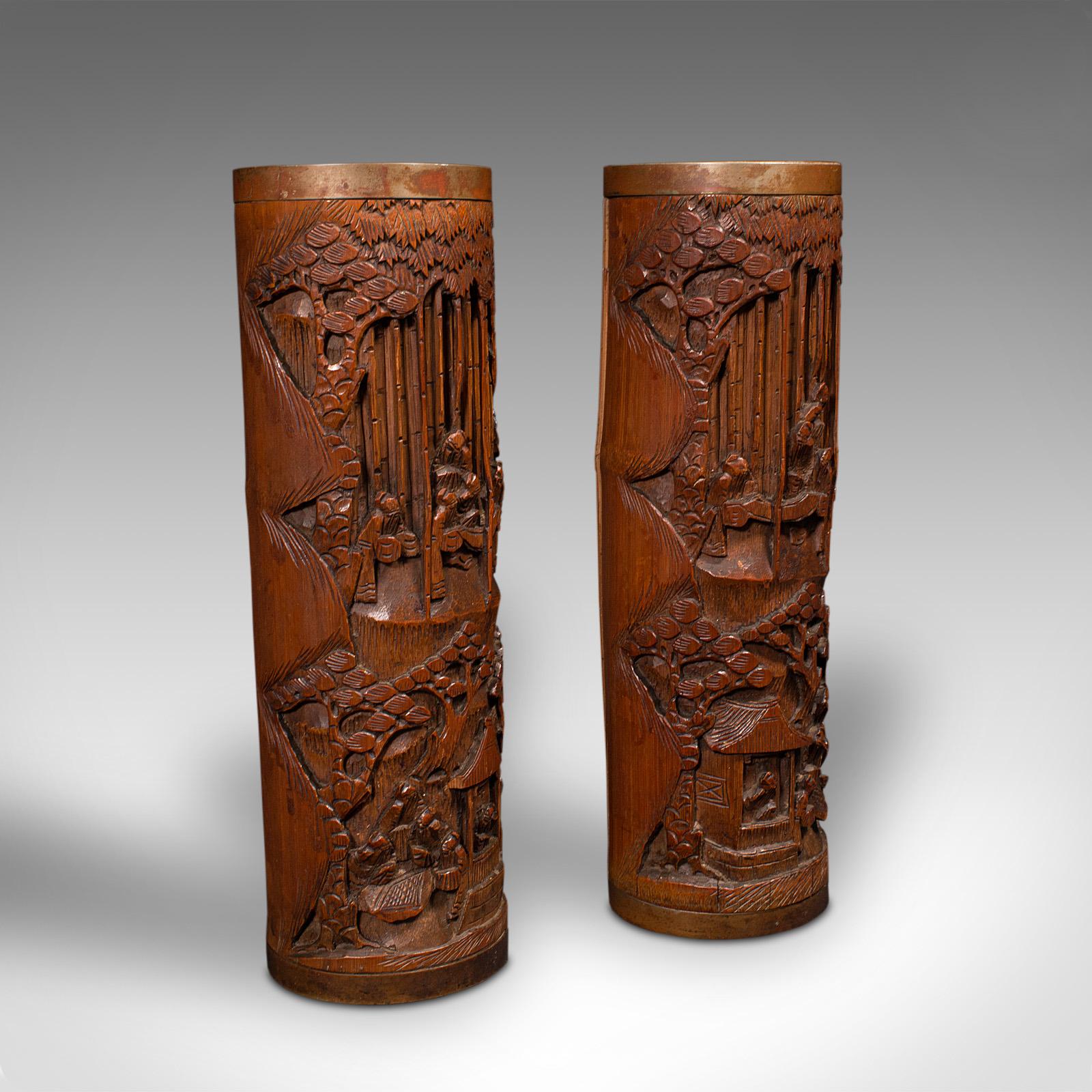 Antique Dry Flower Vases, Chinese, Bamboo, Bitong, Brush Pot, Qing c.1900