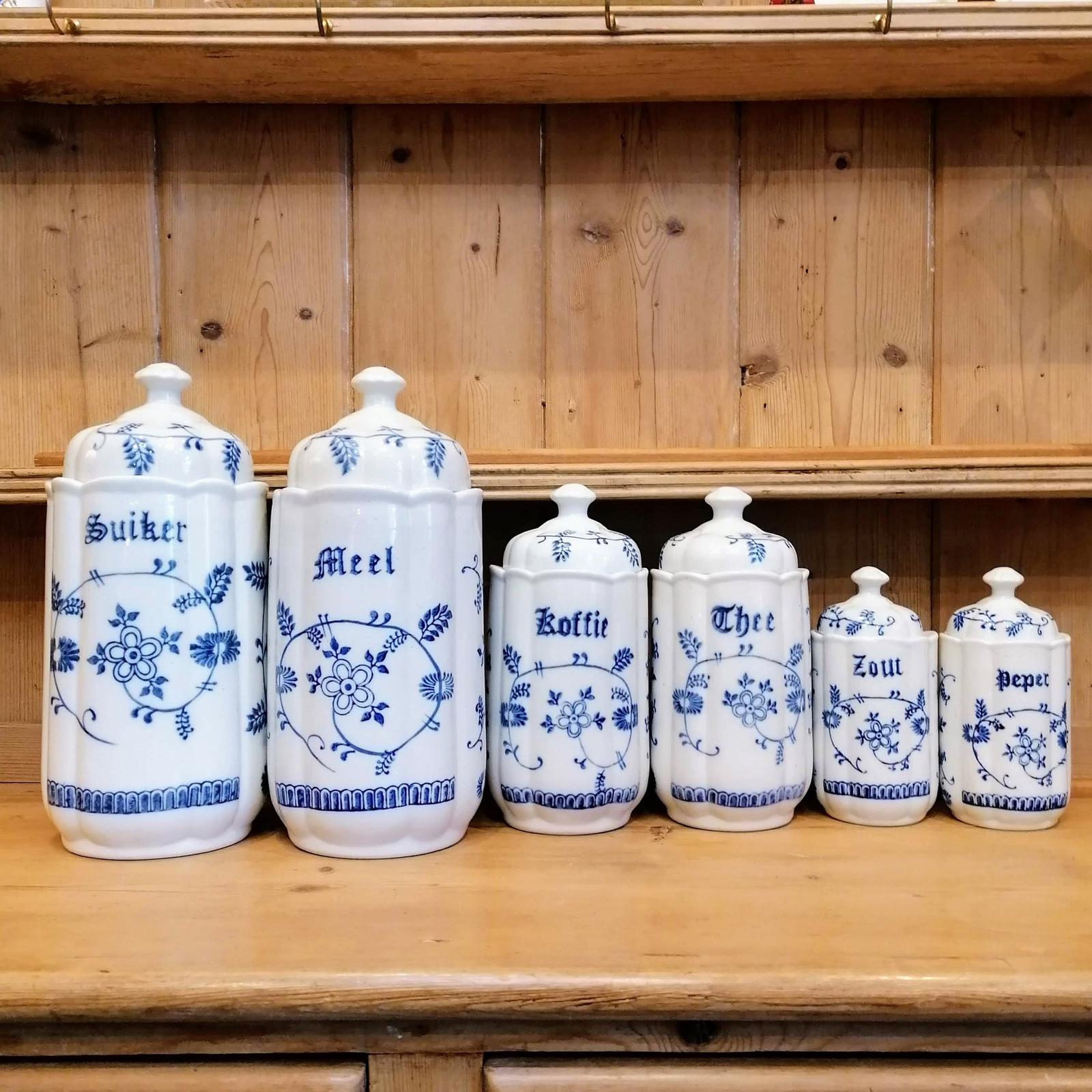 Antique Dutch Blue & White Ceramic Kitchen Storage Jars