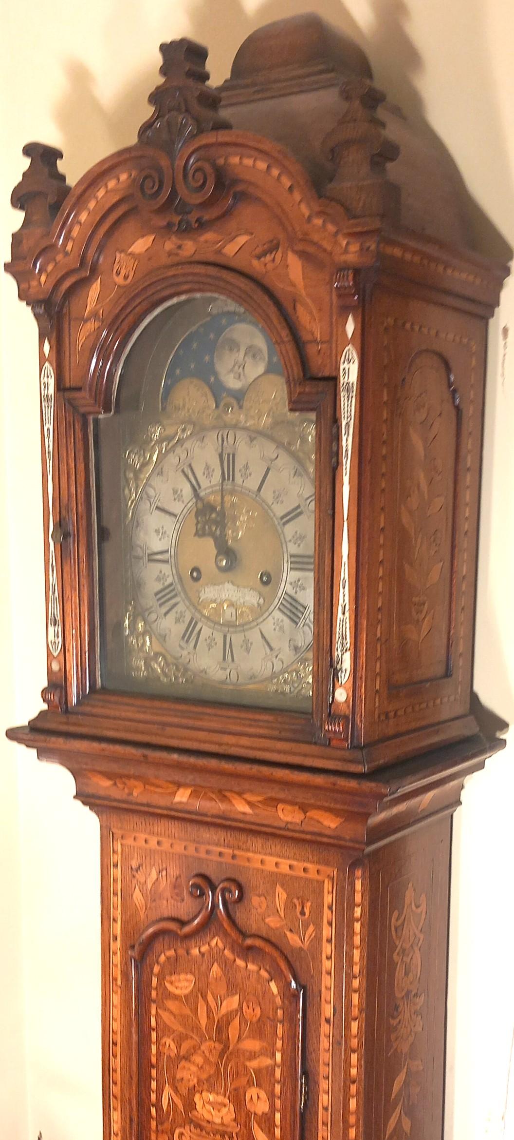 ANTIQUE MARQUETRY LONGCASE CLOCK 76" High
