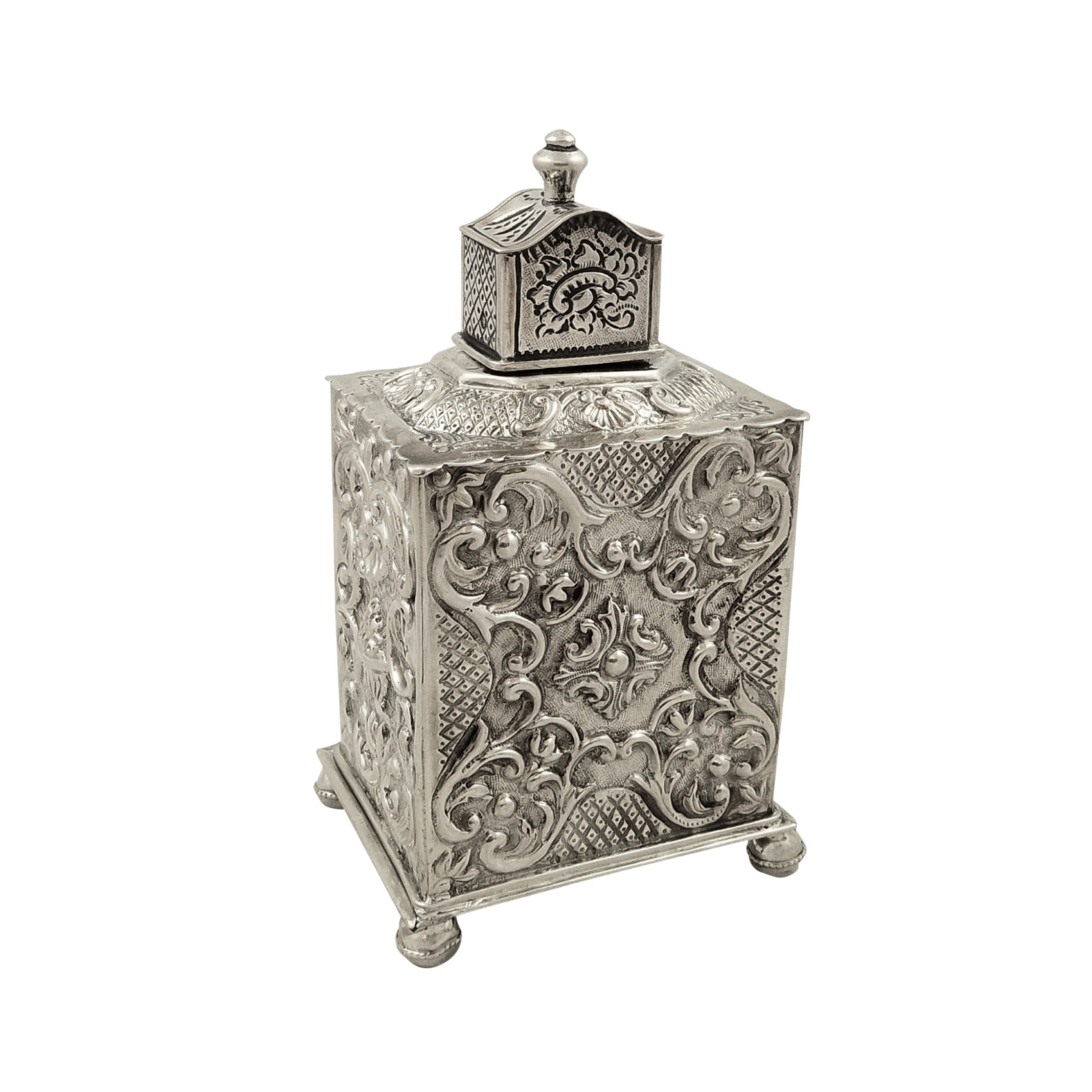 Antique Dutch Silver Caddy with Embossed Decoration 1895