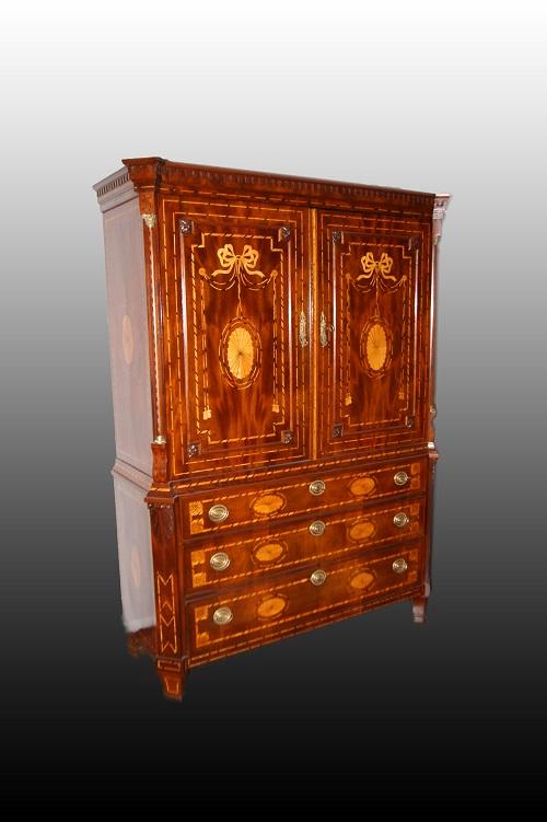 Antique Dutch Wardrobe from the 18th Century in Richly Inlaid Mahogany