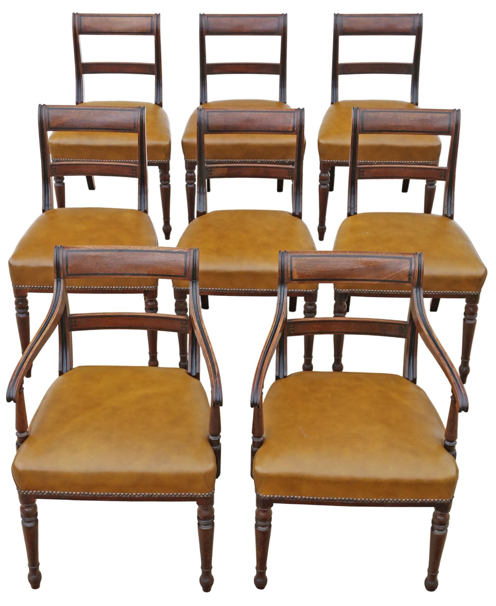 Antique Early 19th Century Fine Quality Set of 8 (6 + 2) Georgian Dining Chairs