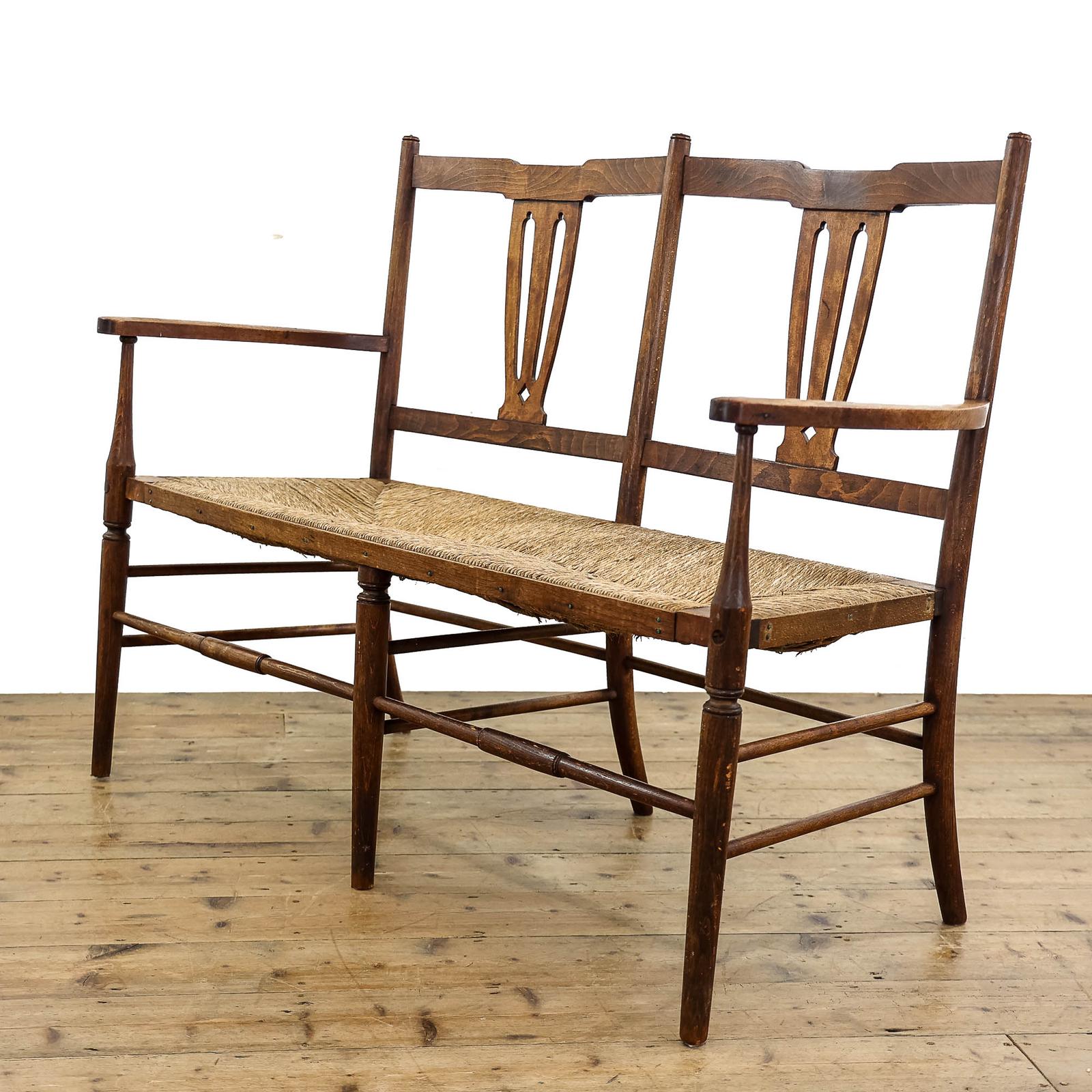 Antique Early 20th Century Bench with Rushed Seat (1 of 7)