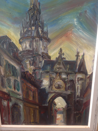 Antique Early 20th Century French Impressionist School Oil on Board 'Rouen Catherdral' Framed & Indistinctly Signed Knife Effect