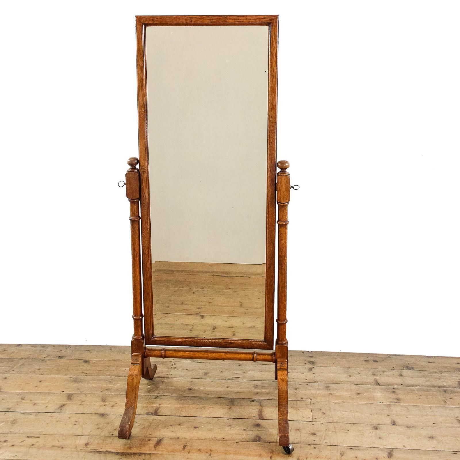 Antique Early 20th Century Golden Oak Cheval Mirror (1 of 7)