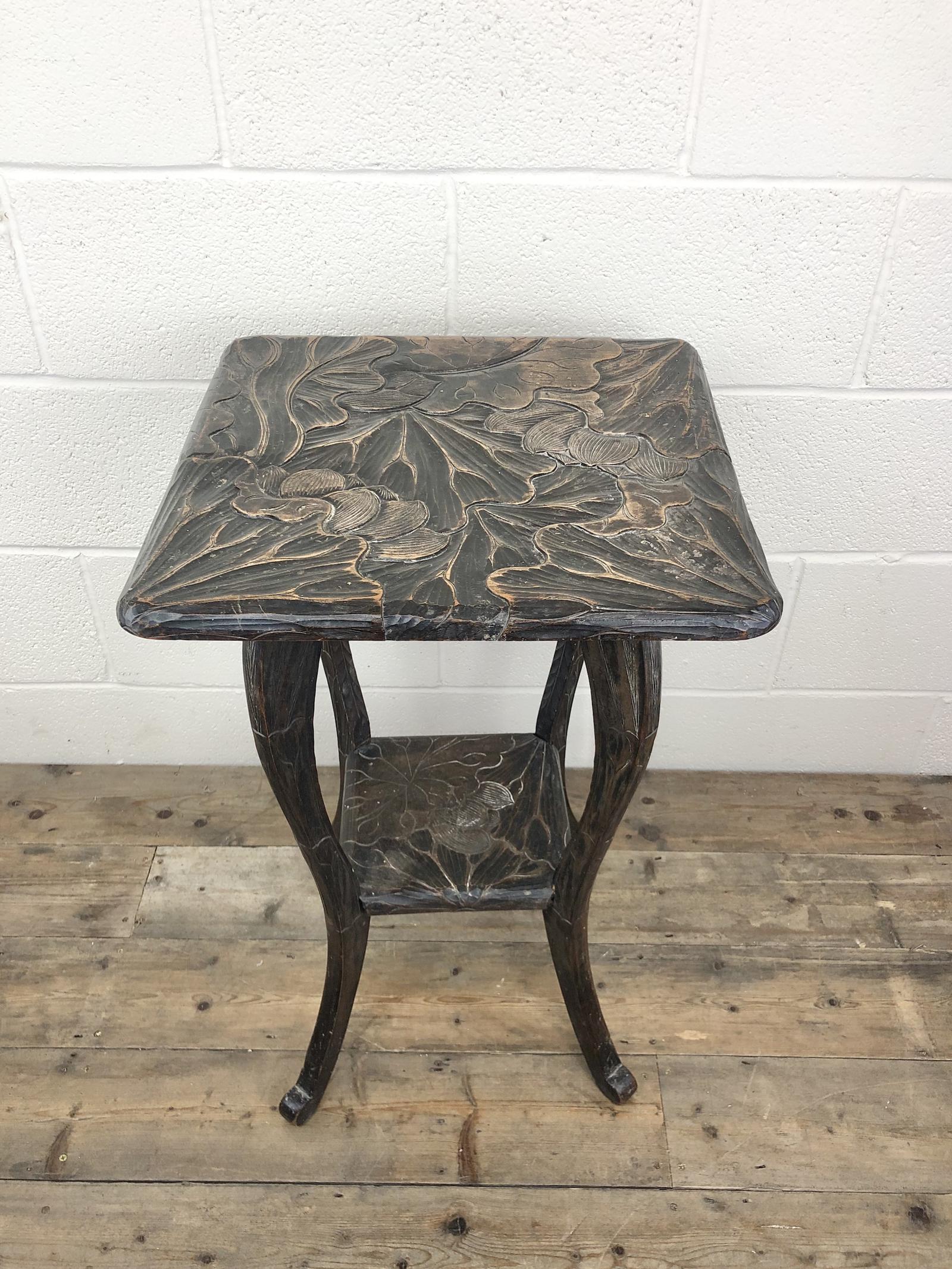 Antique Early 20th Century Liberty Japanese Style Carved Oak Side Table