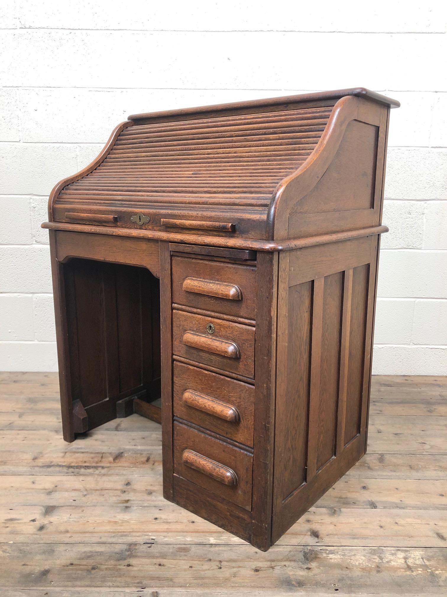 Antique Early 20th Century Oak Roll Top Desk (1 of 13)