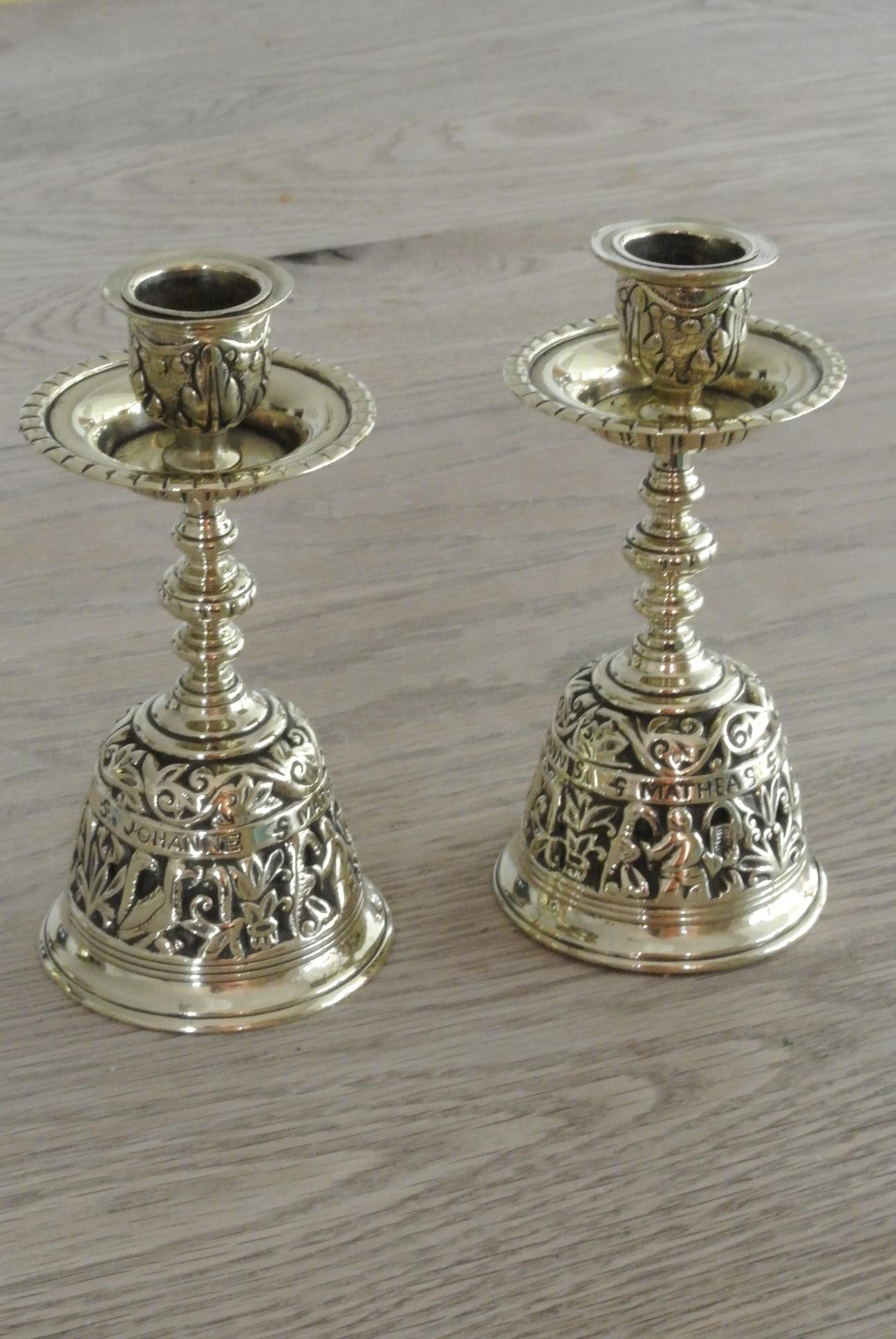 Antique Early 20th Century “The Four Evangelists" Brass Candlesticks