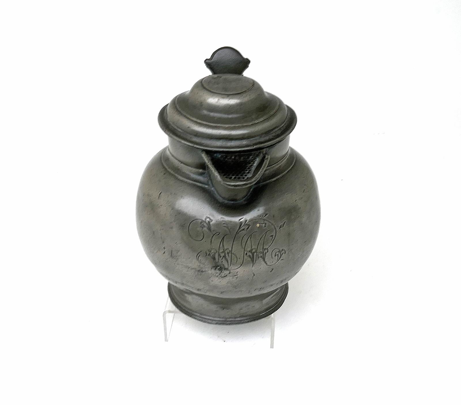 Antique Early Metalware Mid 18thc Copper Coffee Pot With Side Handled. English