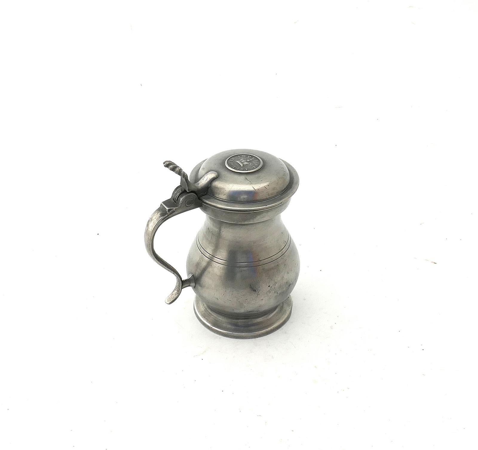 Antique Early Metalware Mid 19thc Pewter Imperial Half-pint Lidded Measure. Scottish
