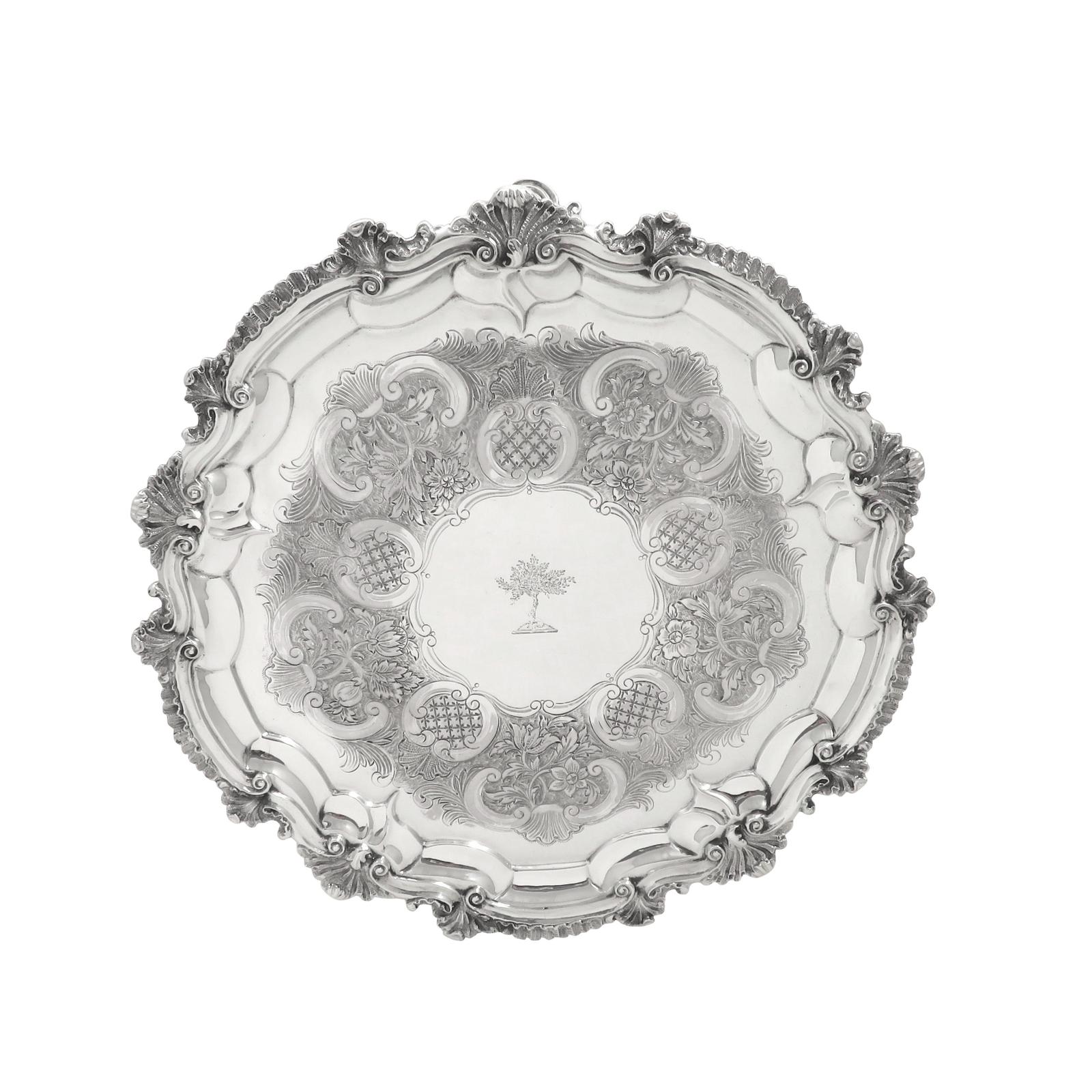 Antique Early Victorian Sterling Silver 10" Tray / Salver 1844