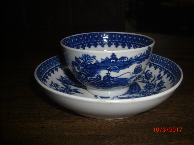 Antique Early Worcester "Fisherman" Pattern, C1790 Tea Bowl and Saucer