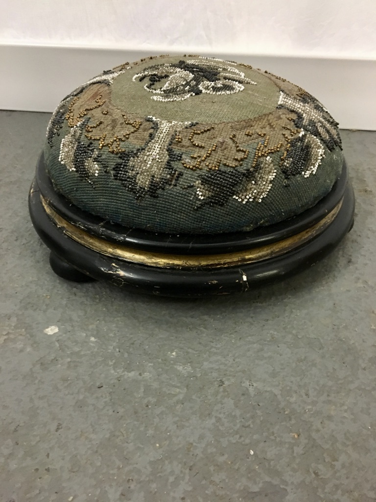 Antique Ebonised Beadwork Footstool