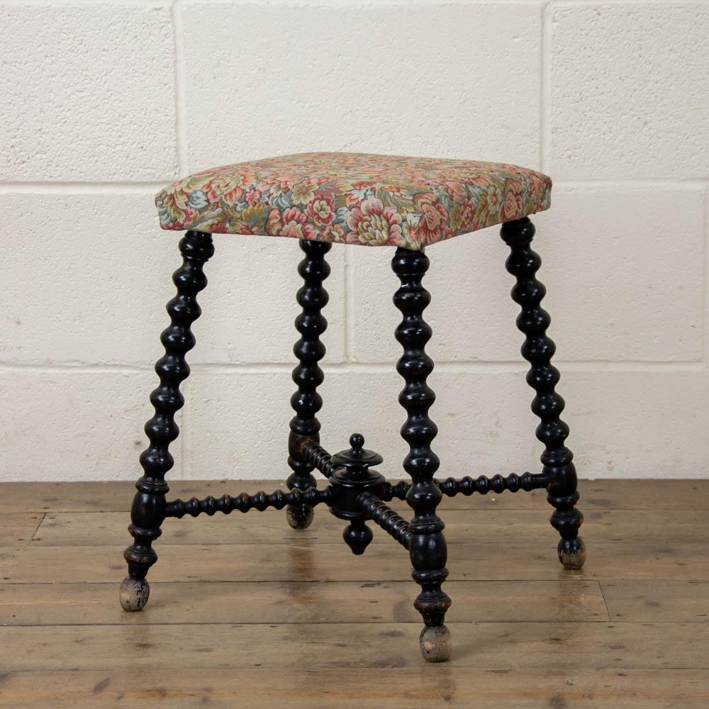 Antique Ebonised Bobbin Stool with Floral Seat (1 of 10)
