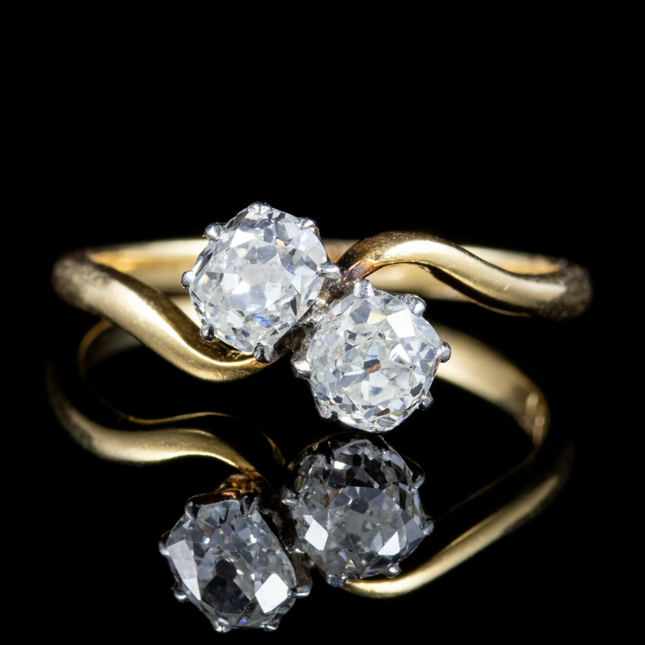 Antique Edwardian 0.80ct Old Cut Diamond Twist Ring 18ct Gold c.1910