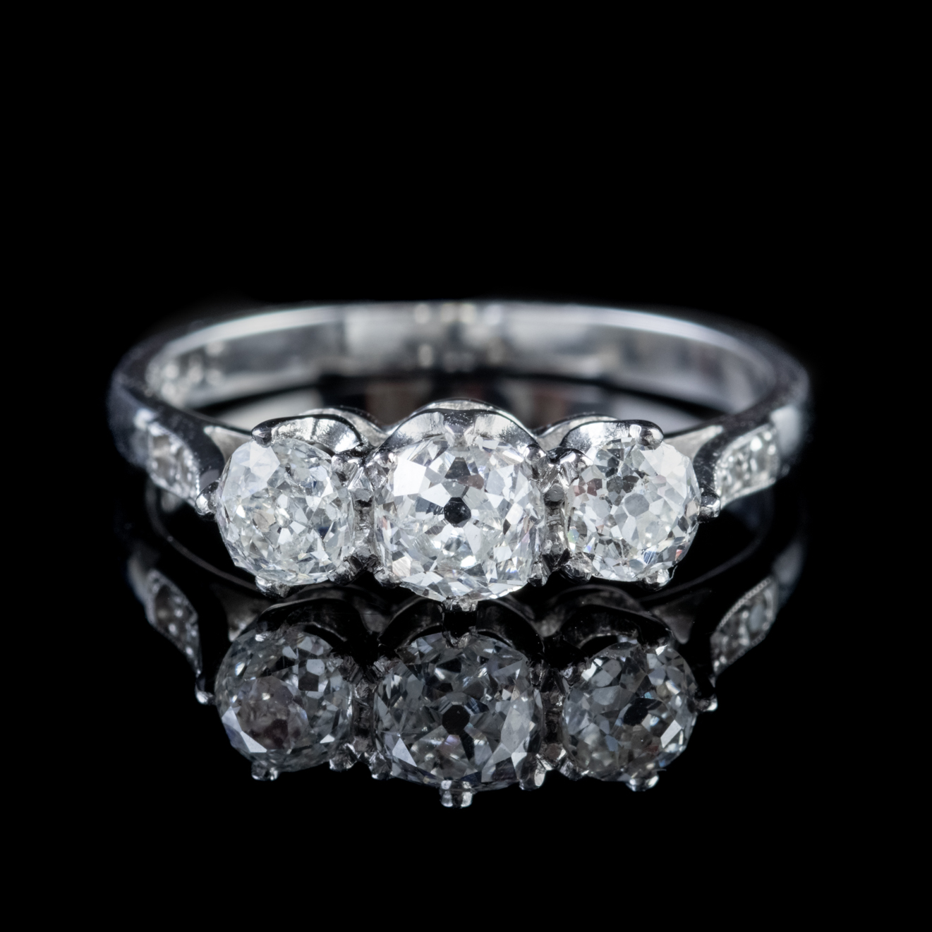 Antique Edwardian 1.24ct Old Cut Diamond Trilogy Platinum Ring with Cert c.1910