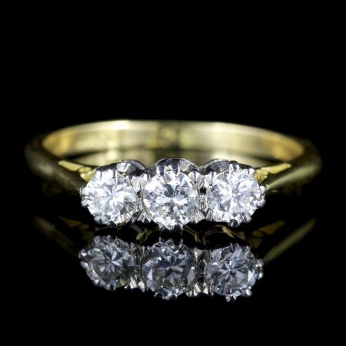 Antique Edwardian 18ct Gold Platinum Diamond Trilogy Ring c.1910