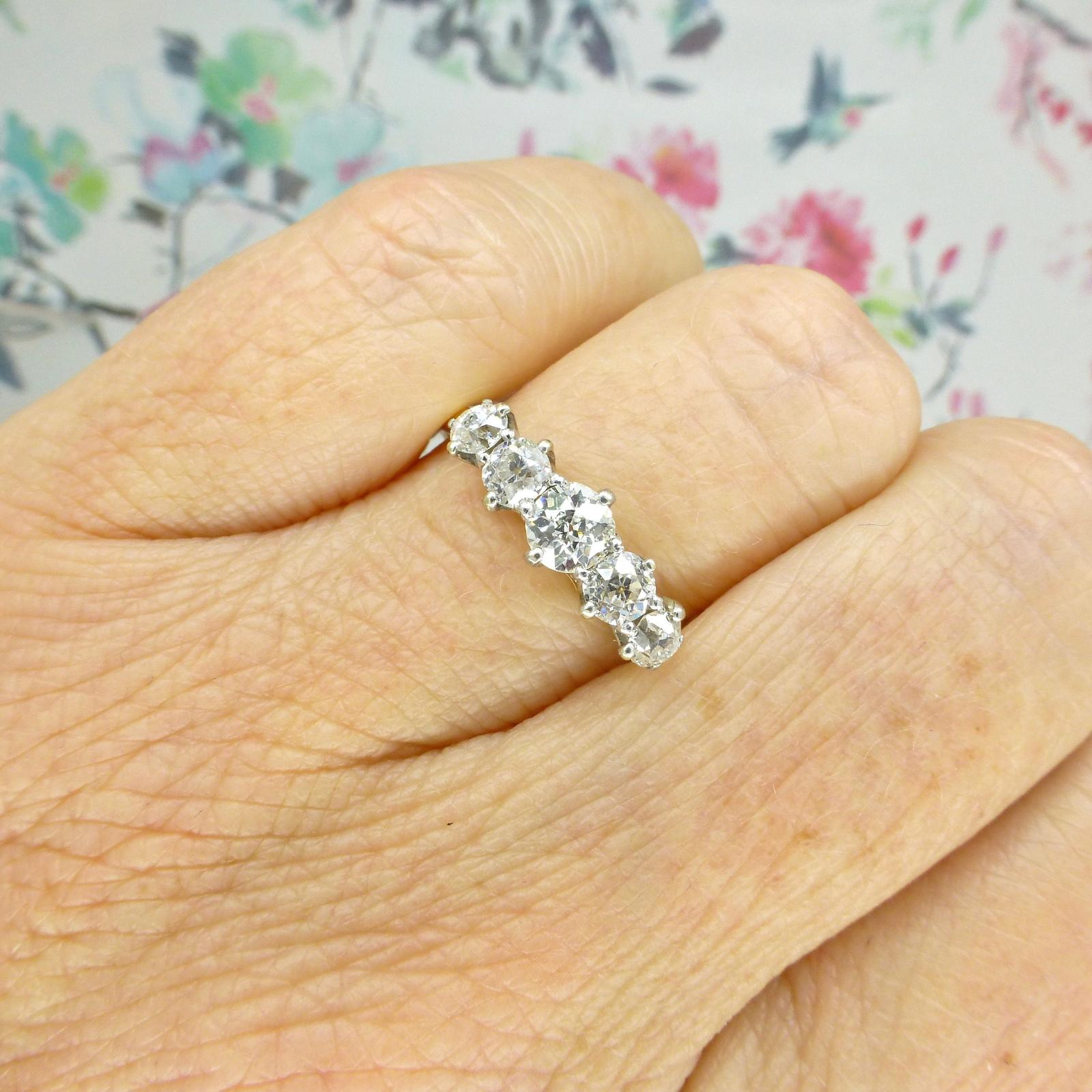 Antique Edwardian 18ct Platinum Old Mine Cut Five Stone Ring 0.80ct