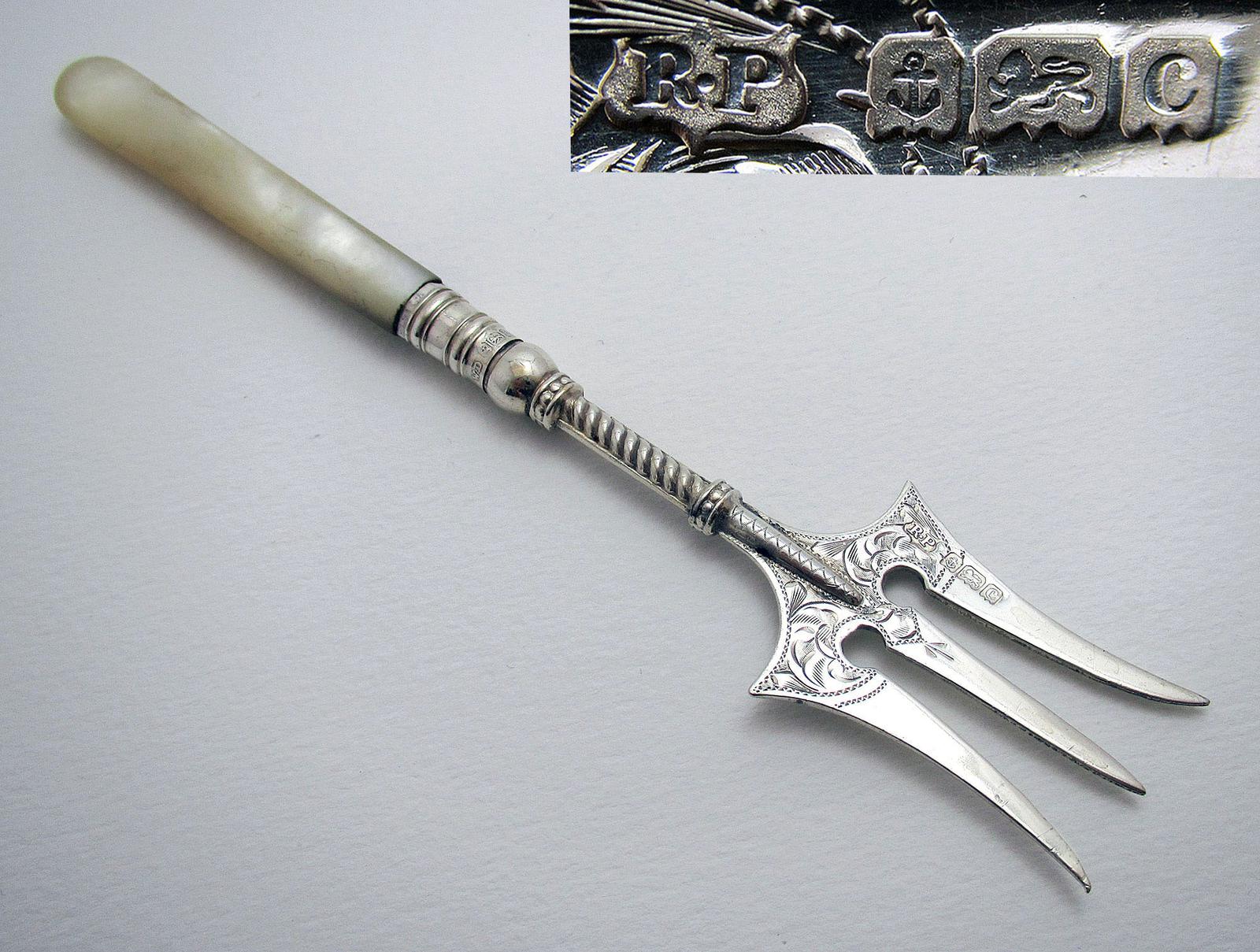 Antique Edwardian 1902 Solid Sterling Silver & Mother of Pearl Bread Muffin Cake Fork Server