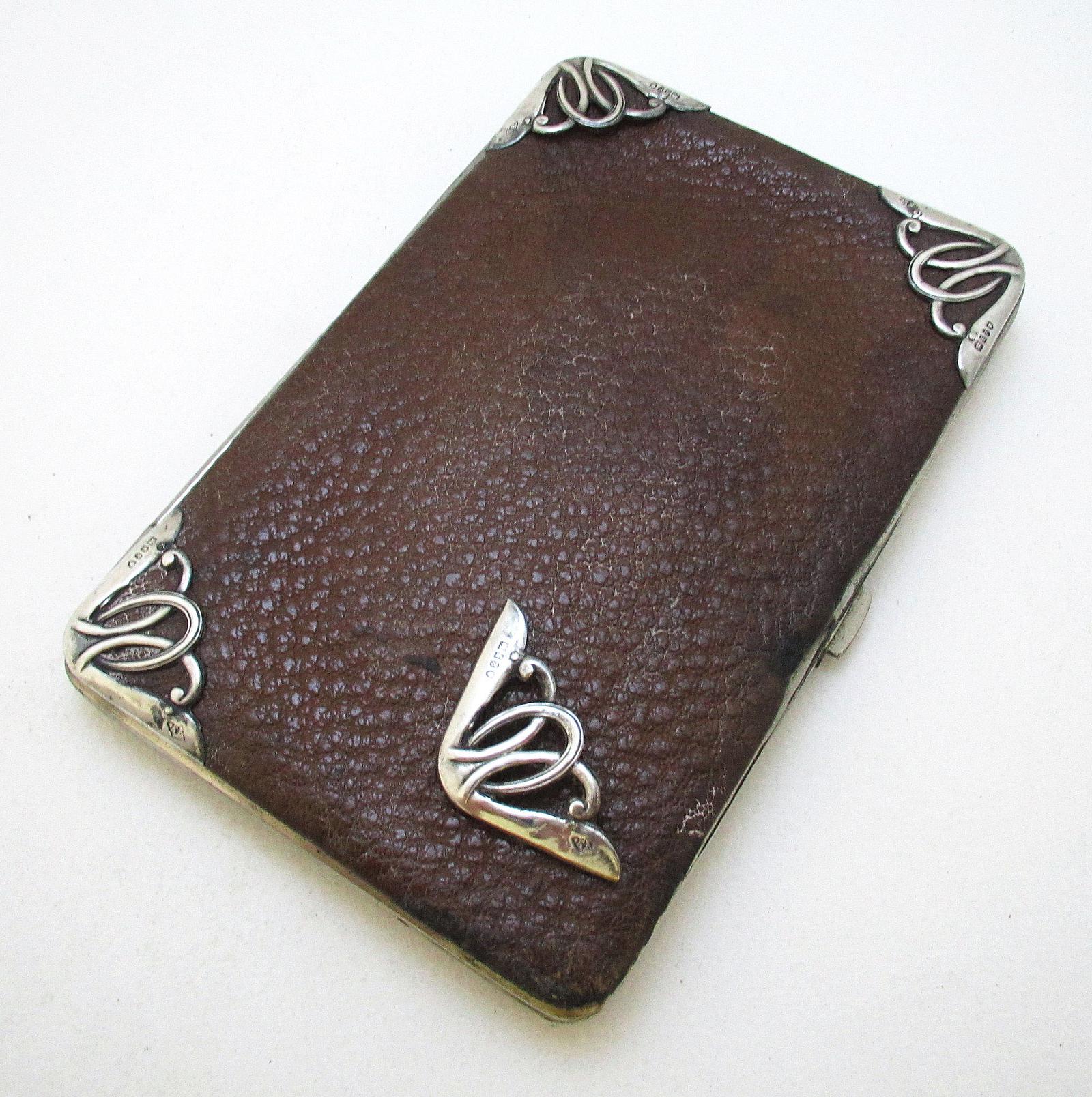 Antique Edwardian 1903 Solid Sterling Silver Mounted & Leather English Wallet Purse Name Card Case