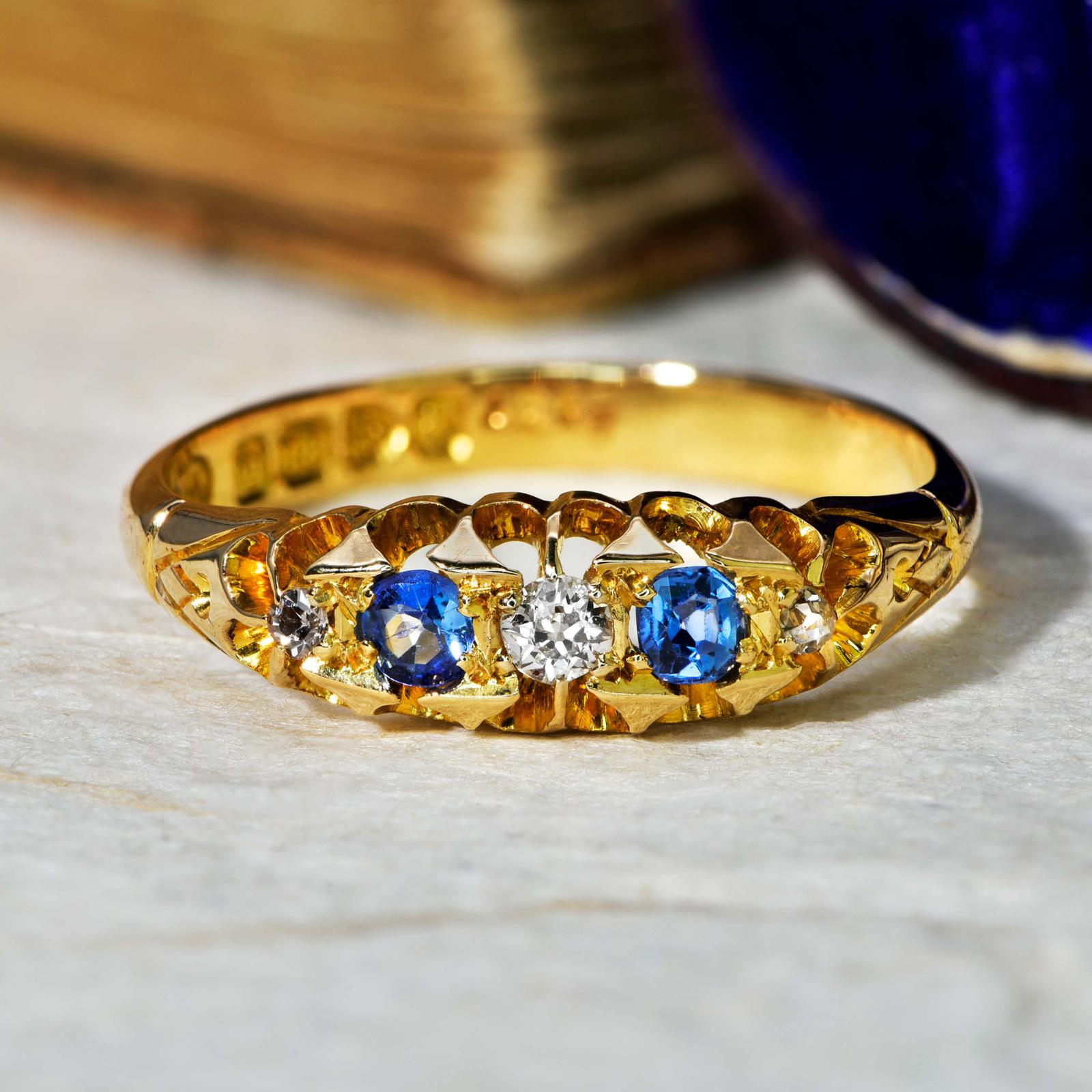 Antique Edwardian 1905 Sapphire and Old Cut Diamond Ring