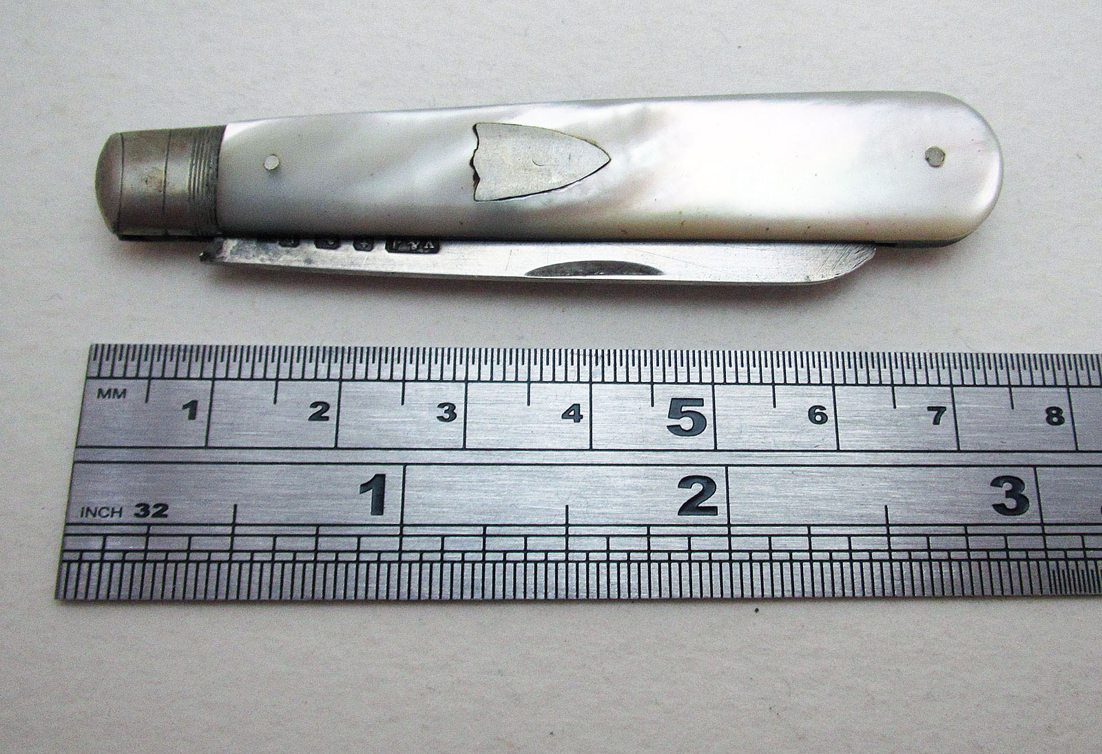 Antique Edwardian 1909 Solid Sterling Silver & Mother of Pearl Mop English Sheffield Hallmarked Folding Pocket Fruit Penknife. Villiers & Jackson