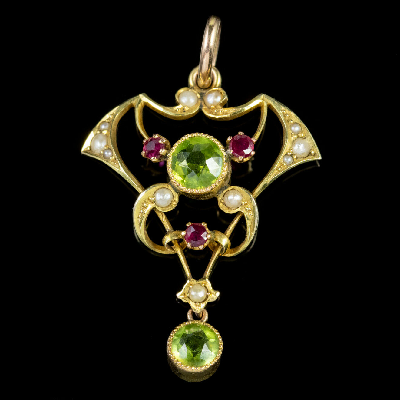 Antique Edwardian 9ct Gold Ruby Peridot Pearl Pendant c.1910