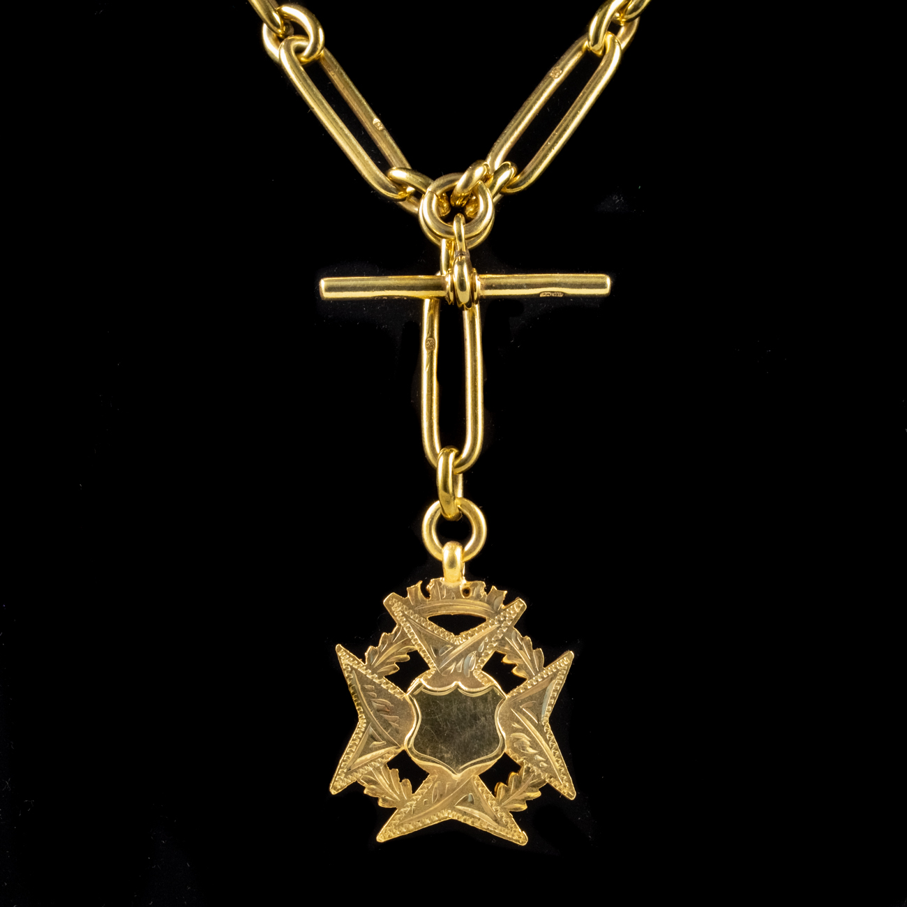 Antique Edwardian Albert Chain Maltese Cross Medallion Silver 18ct Gold Dated 1904