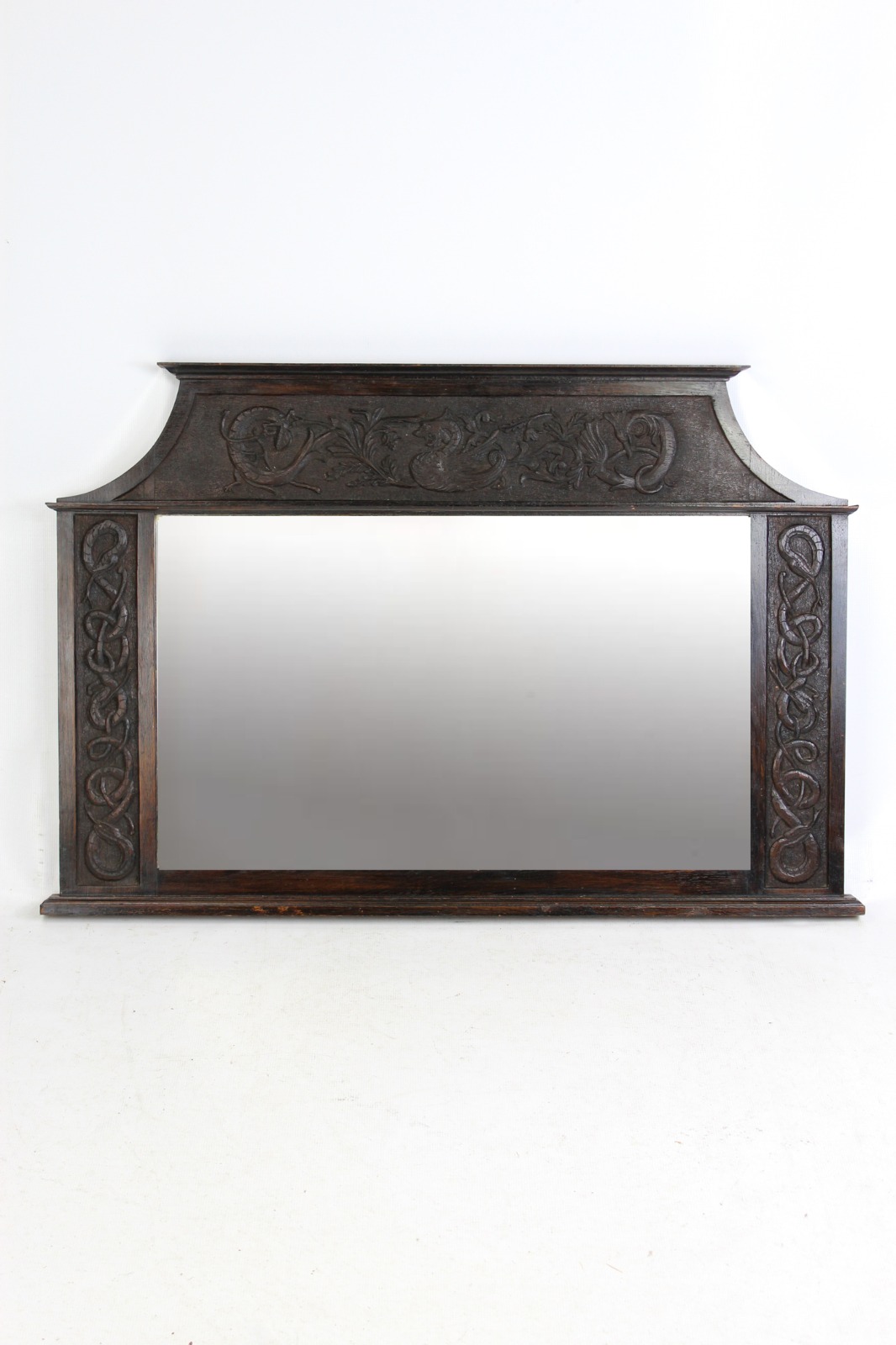 Antique Edwardian Arts & Crafts Oak Overmantle Mirror (1 of 1)