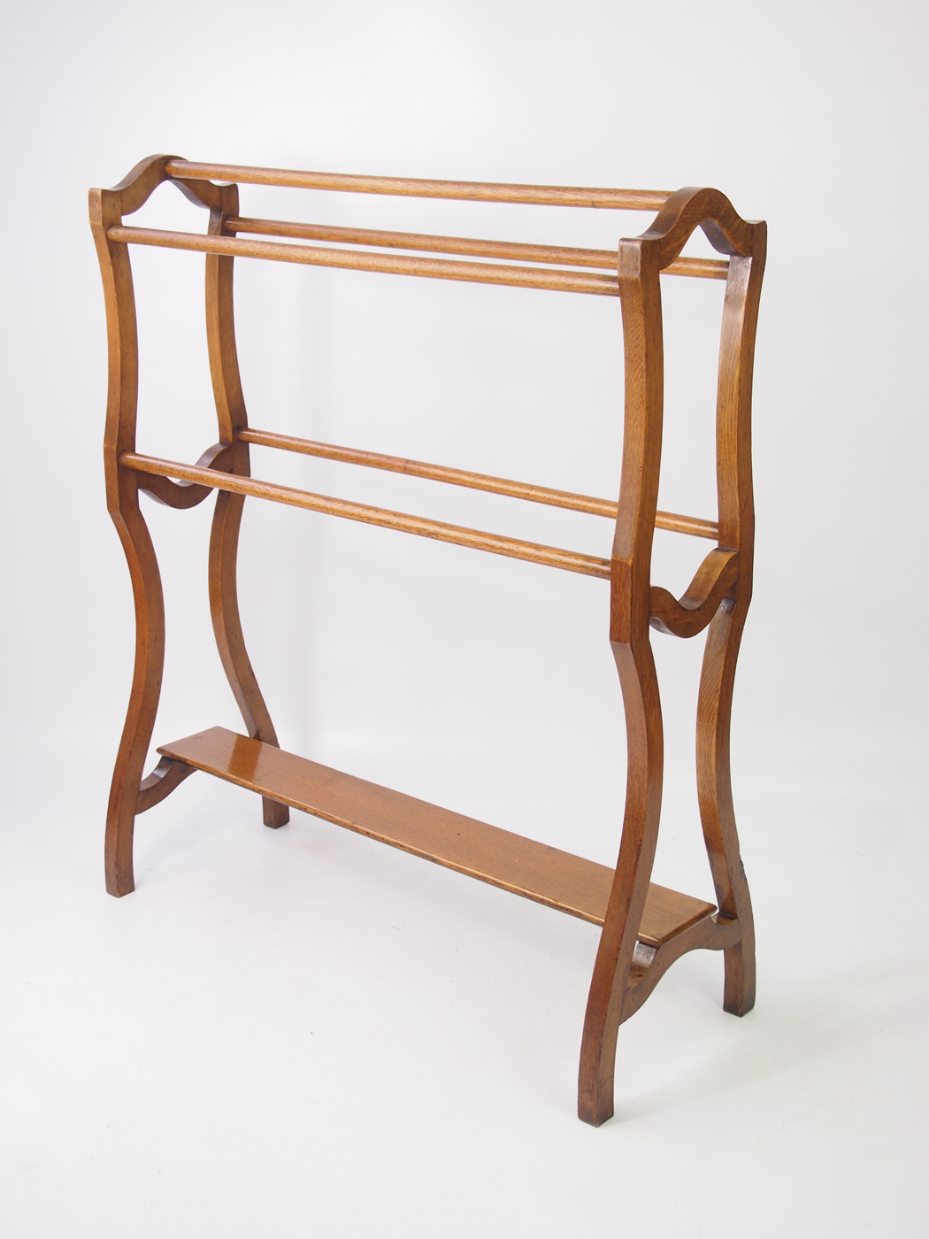 Antique Edwardian Arts & Crafts Oak Towel Rail