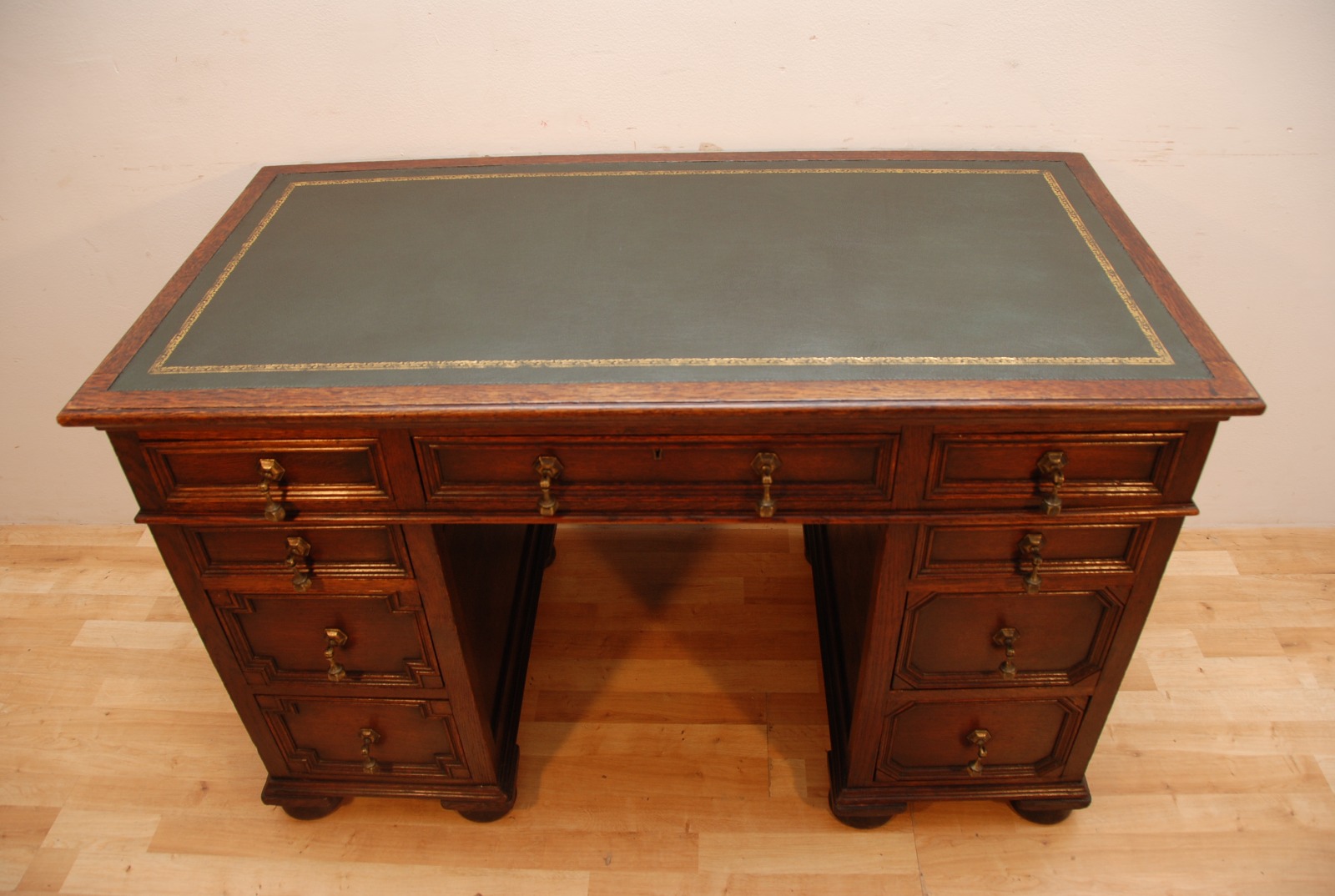 Antique Edwardian Beautiful Oak Carved Writing Kneehole Desk