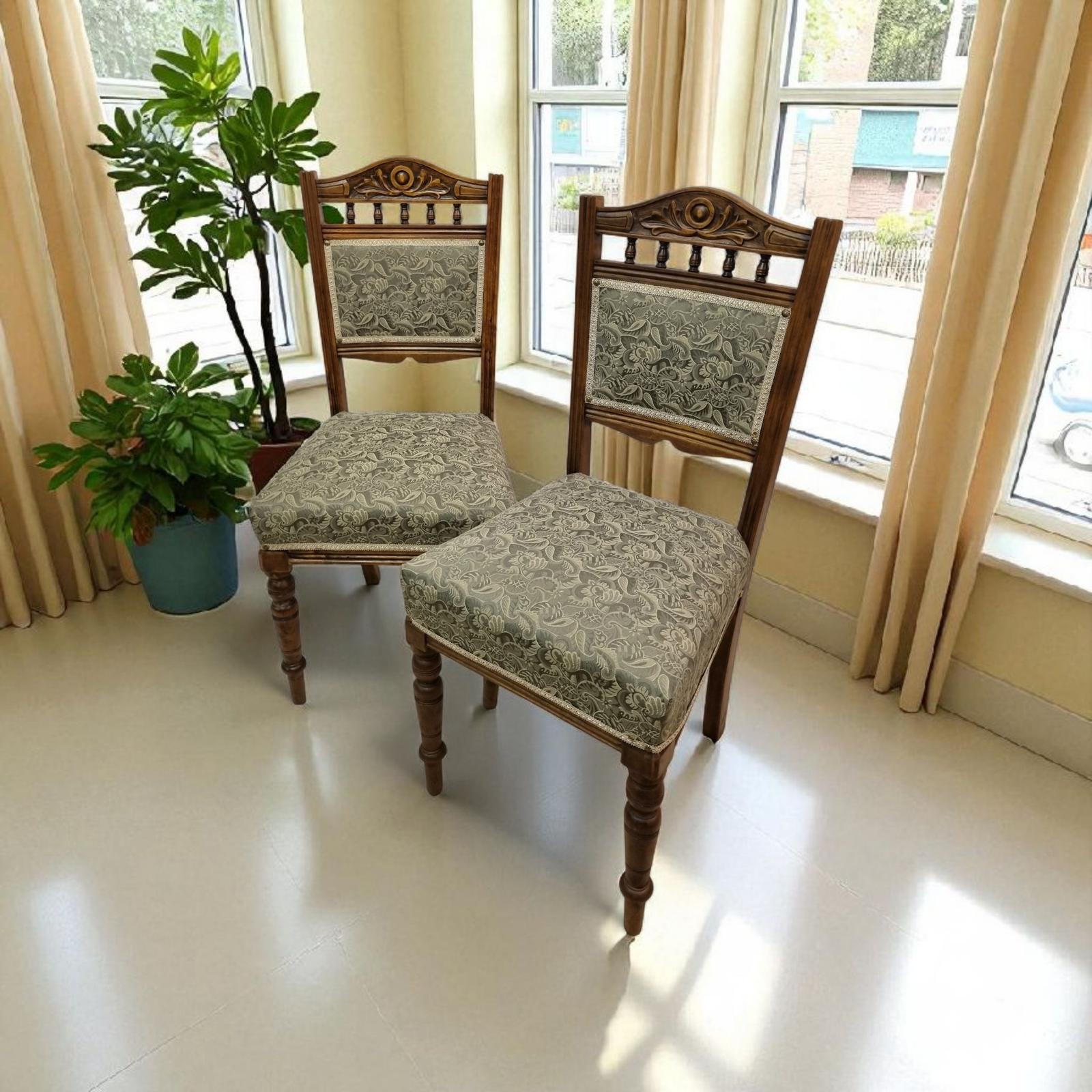 Antique Edwardian Bedroom Chairs c.1910 / Set of 2 / New Upholstery