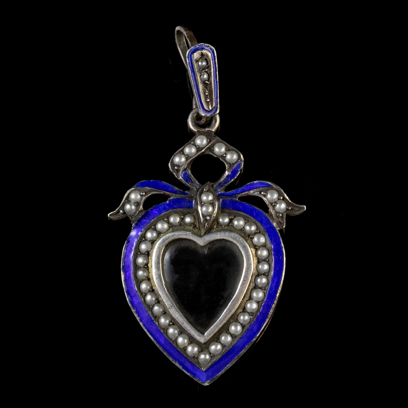 Antique Edwardian Blue Enamel Pearl Heart Lock c.1905