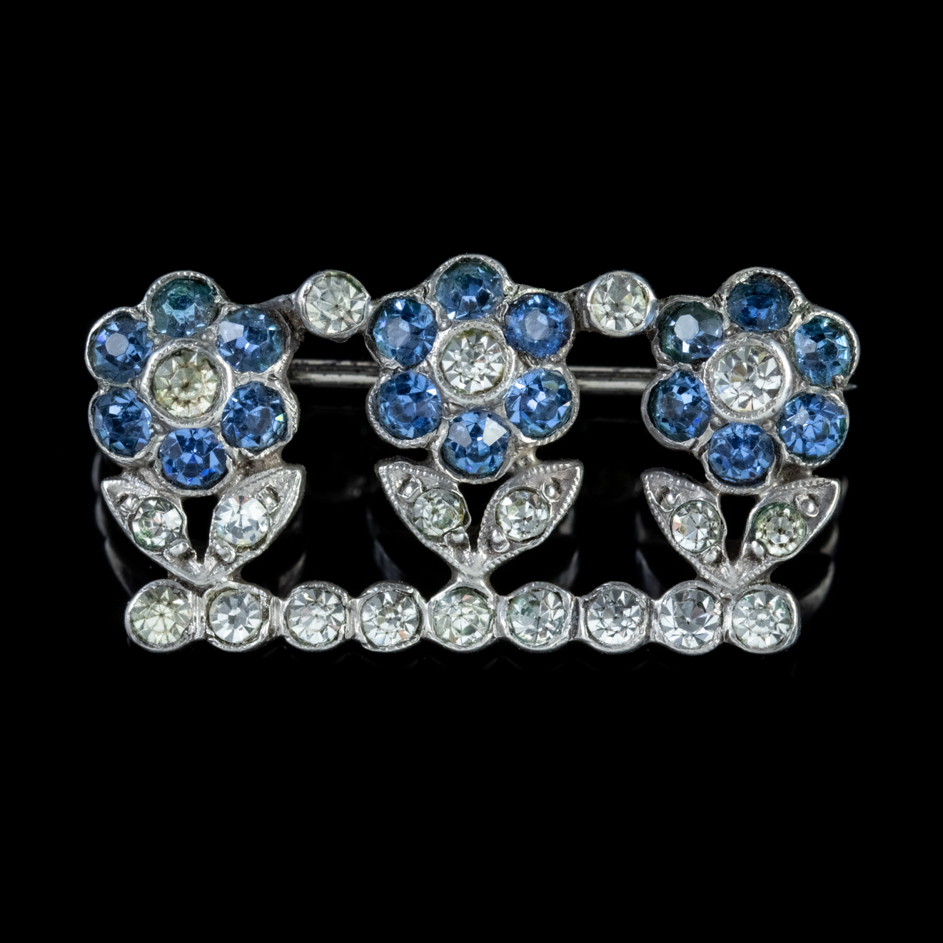 Antique Edwardian Blue Paste 'Forget Me Not' Trilogy Brooch Silver c.1905