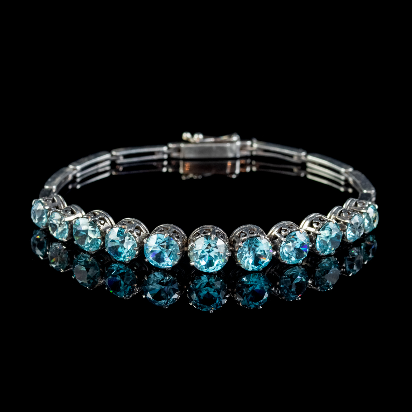 Antique Edwardian Blue Zircon Bracelet Silver 8ct of Zircon c. 1910