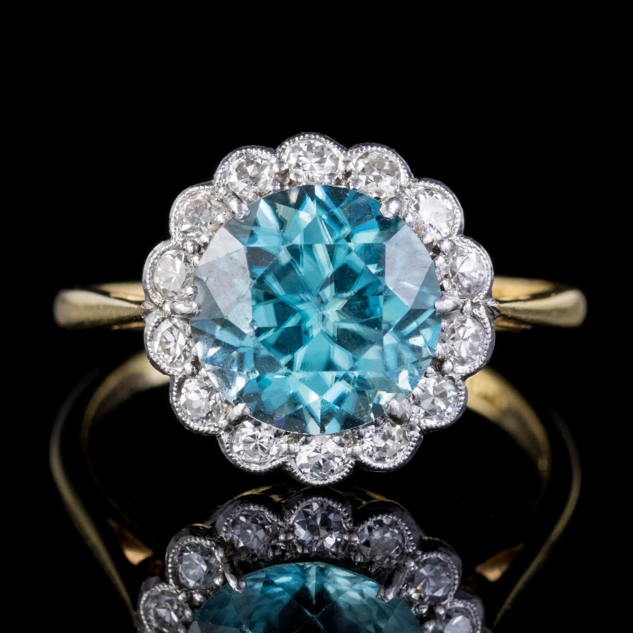 Antique Edwardian Blue Zircon Diamond Cluster Ring 18ct Gold Platinum 3ct Zircon c.1908