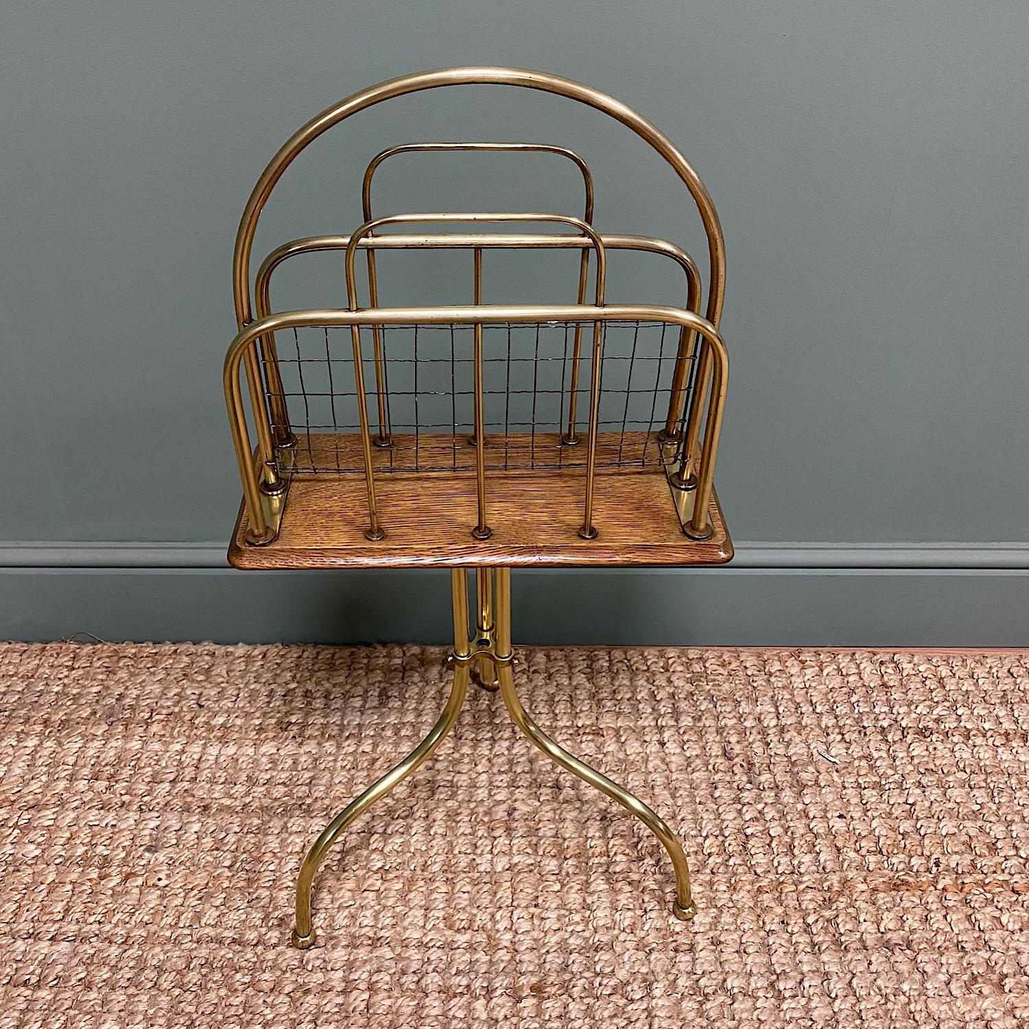Antique Edwardian Brass & Oak Revolving Book Stand