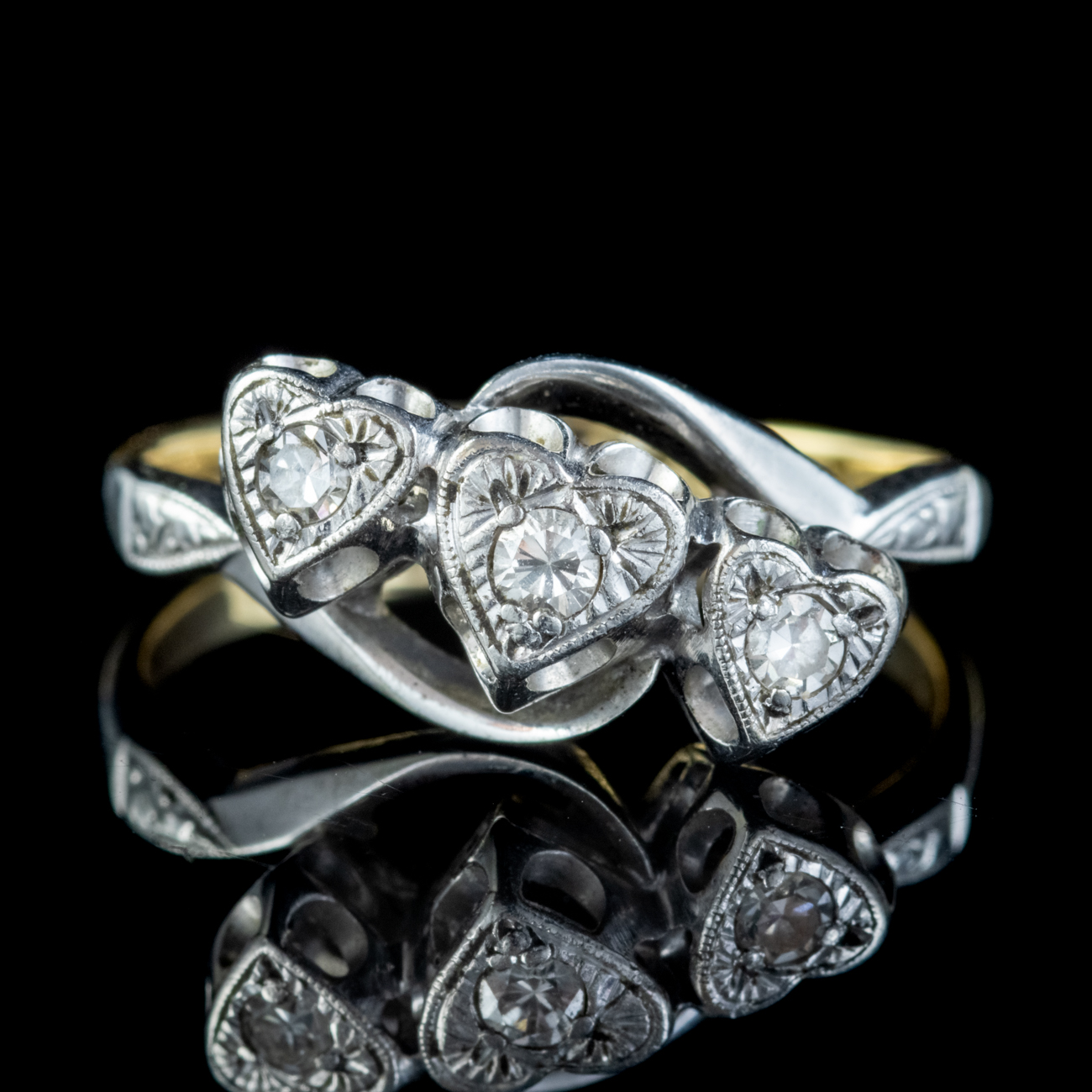 Antique Edwardian Diamond Heart Trilogy Twist Ring 18ct Gold Platinum c.1905