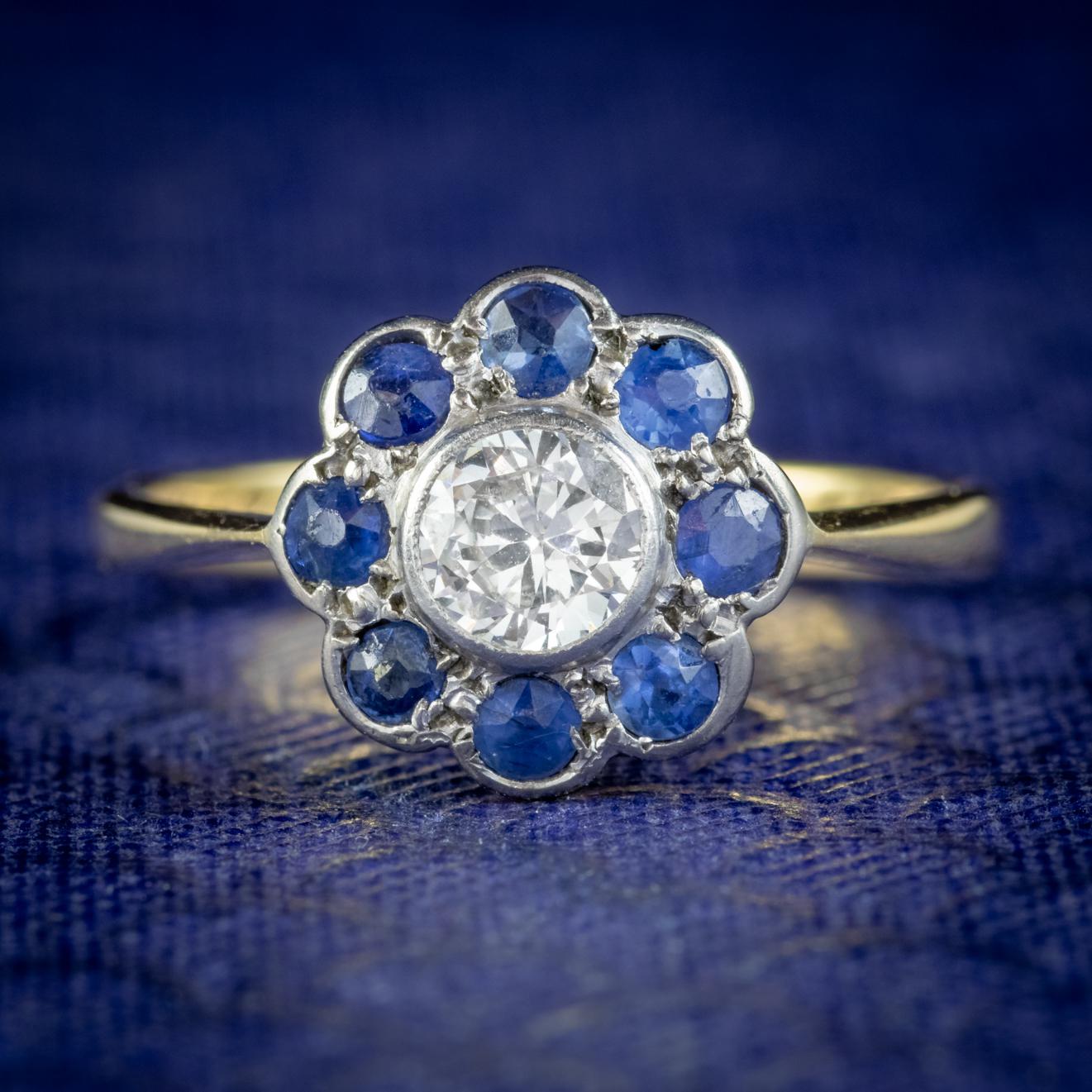 Antique Edwardian Diamond Sapphire Cluster Ring 18ct Gold Platinum Circa 1905