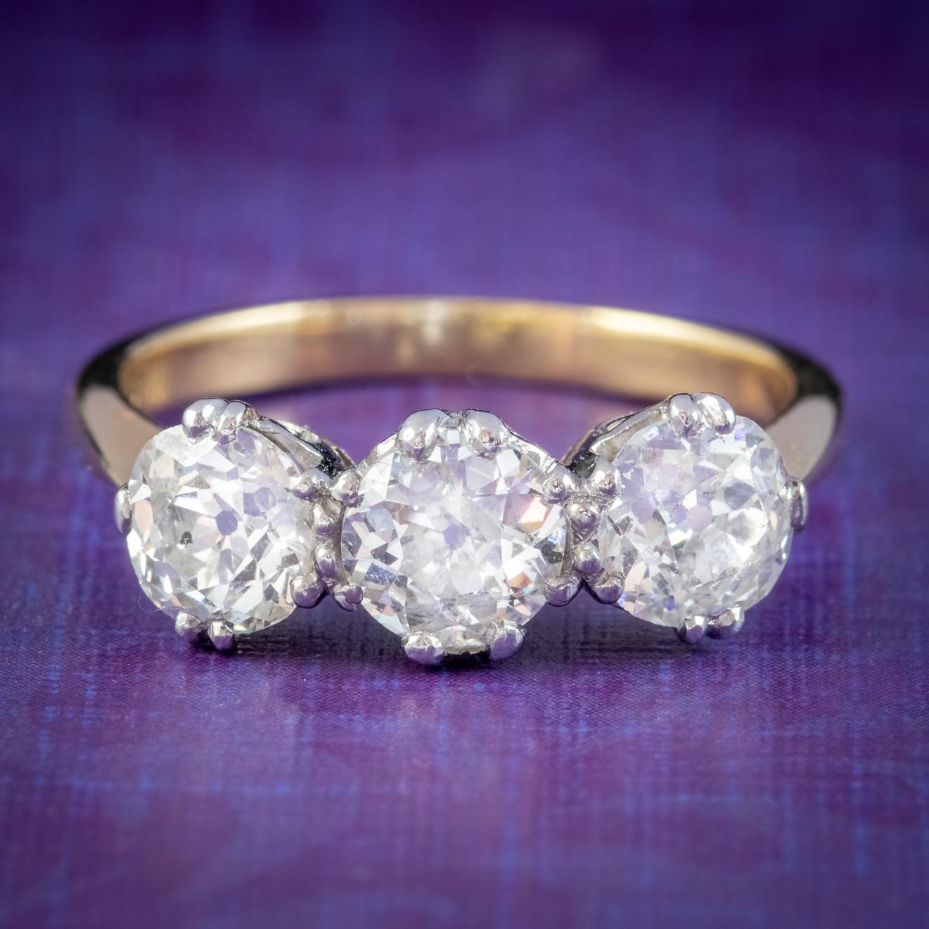 Antique Edwardian Diamond Trilogy Ring 18ct Gold Platinum 2.30ct of Diamond c.1905