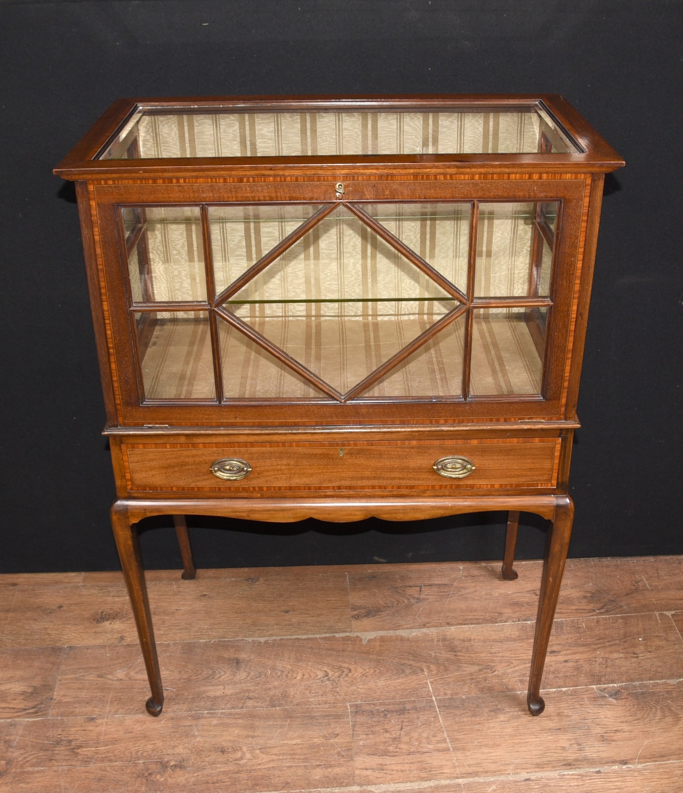 Antique Edwardian Display China Cabinet Mahogany Satinwood Chest