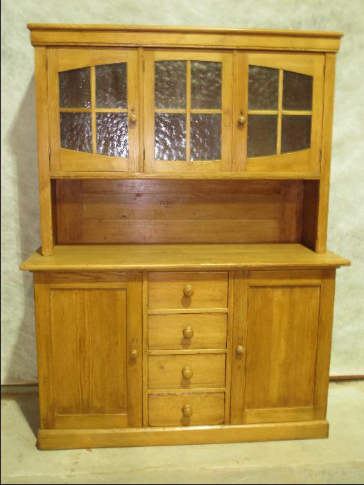 Antique Edwardian Eastern European Pine Glazed Dresser